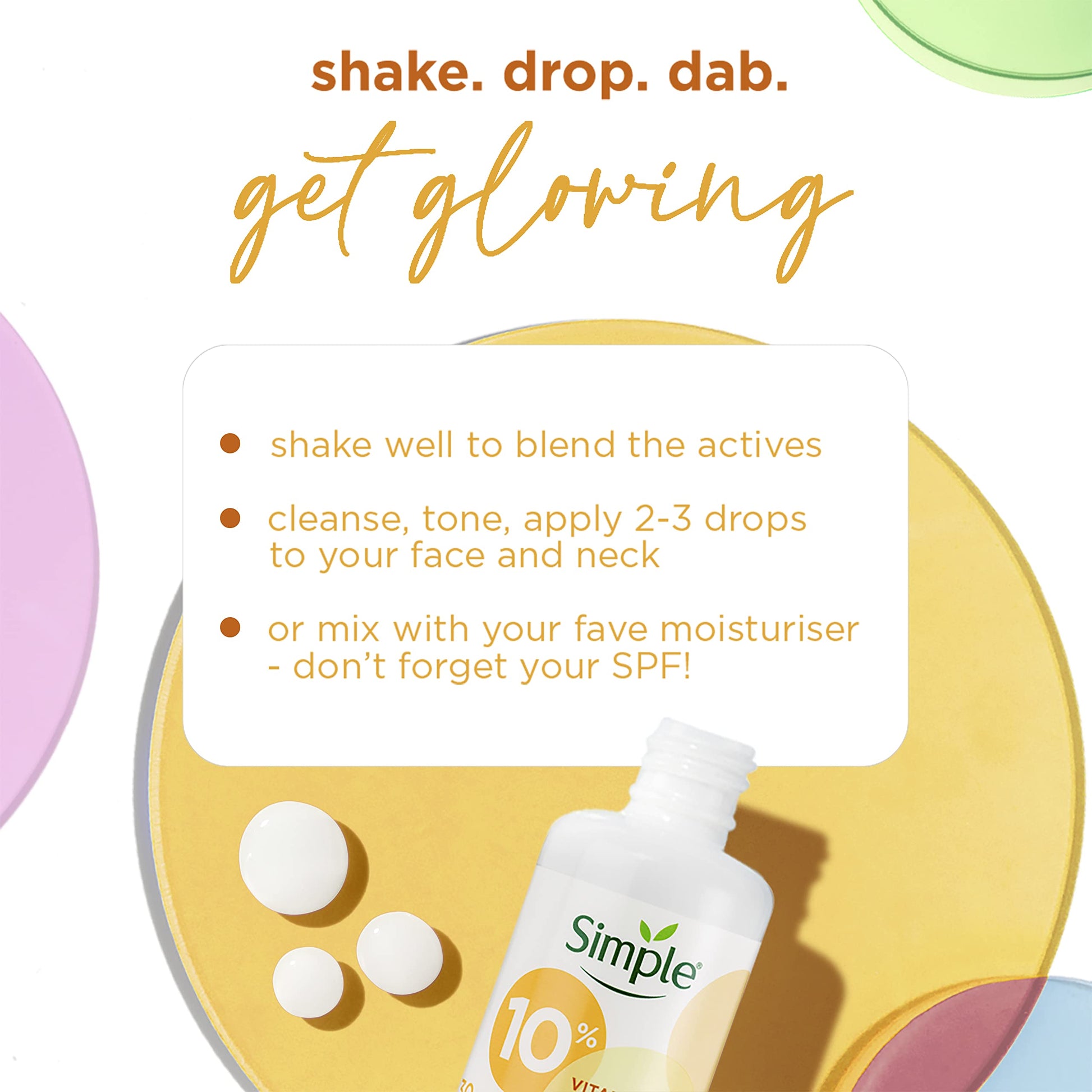 - The glowing kind! Simple 10% Vitamin C + E + F* Booster Serum instantly hydrates and brightens dull, dry skin while protecting it from external aggressors
