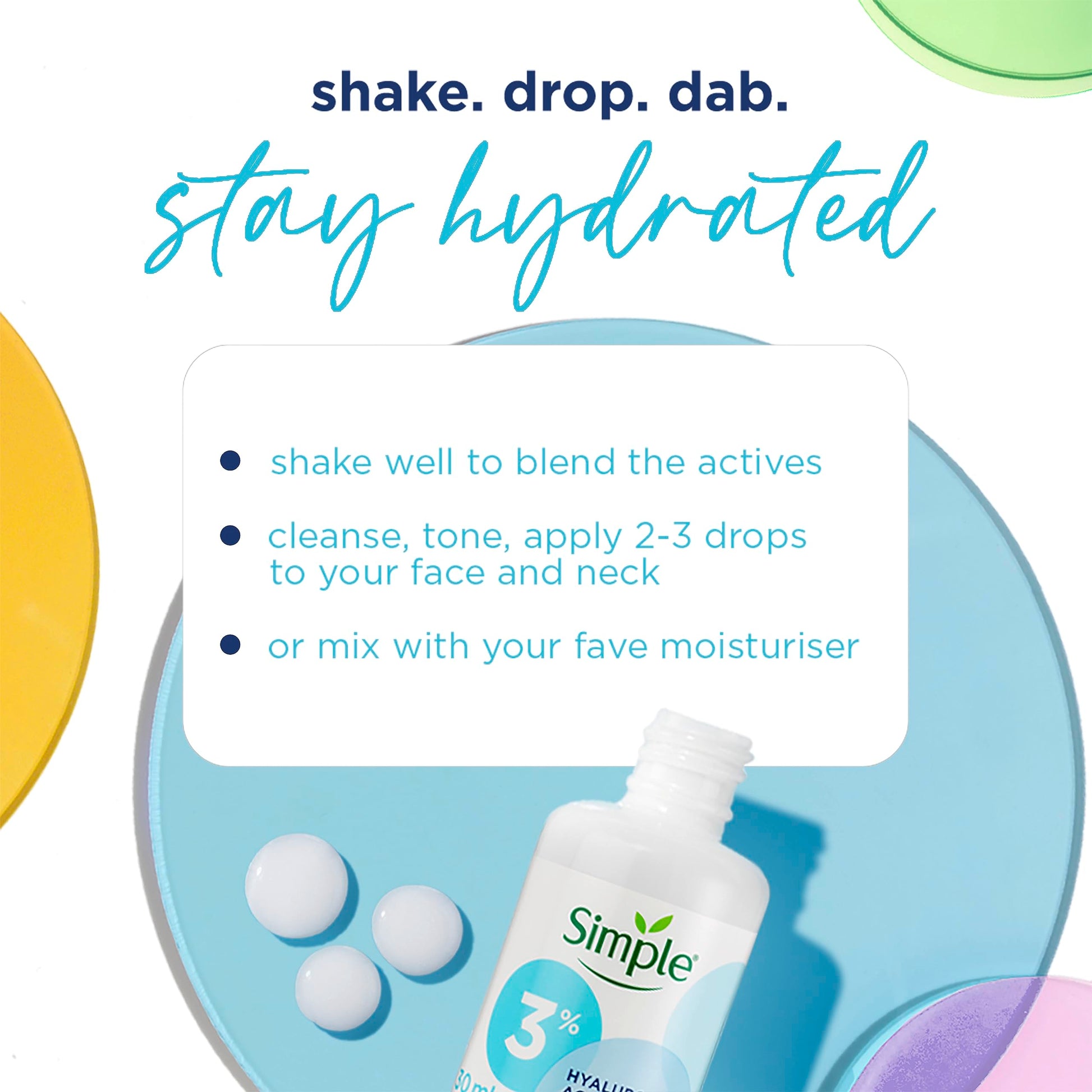 - The hydrating kind! Simple 3% Hyaluronic Acid + Vitamin B5* Booster Serum locks in moisture to make dry and sensitive skin instantly softer and more youthful-looking