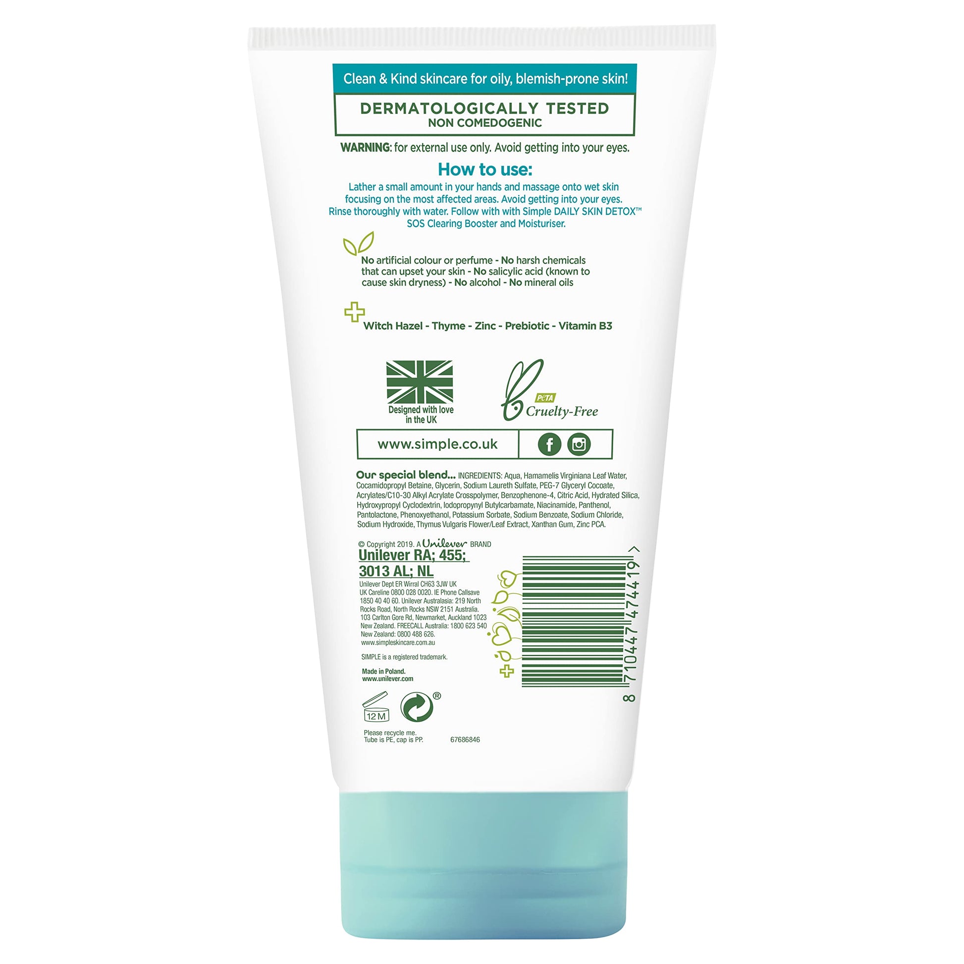 Simple Daily Skin Detox Purifying Facial Wash, 150ml