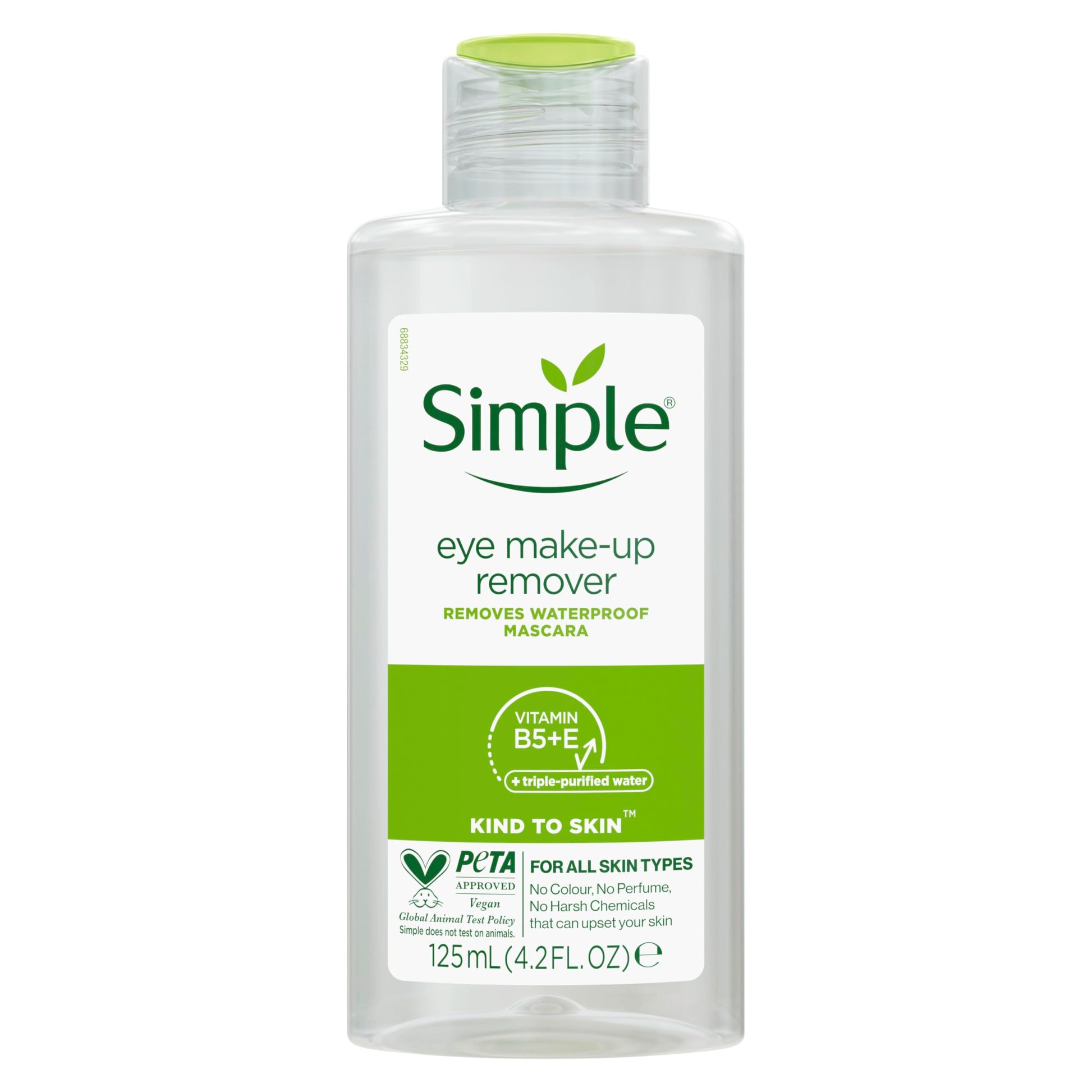 - Simple Kind To Skin Eye Make-up Remover effortlessly removes eye make-up in one go – yes, even waterproof mascara!