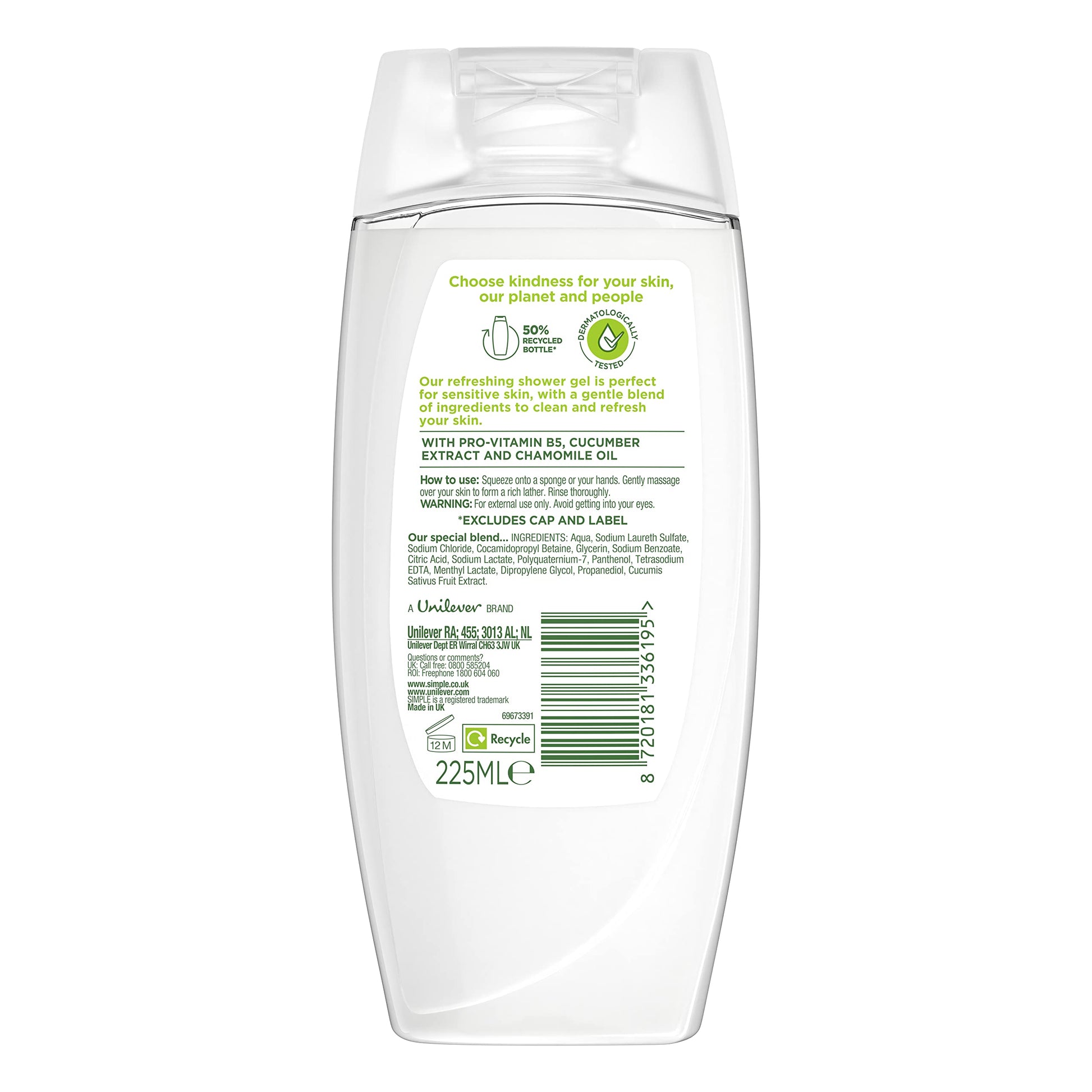 - Simple Refreshing Shower Gel is enriched with cucumber extracts and pro-vitamin B5