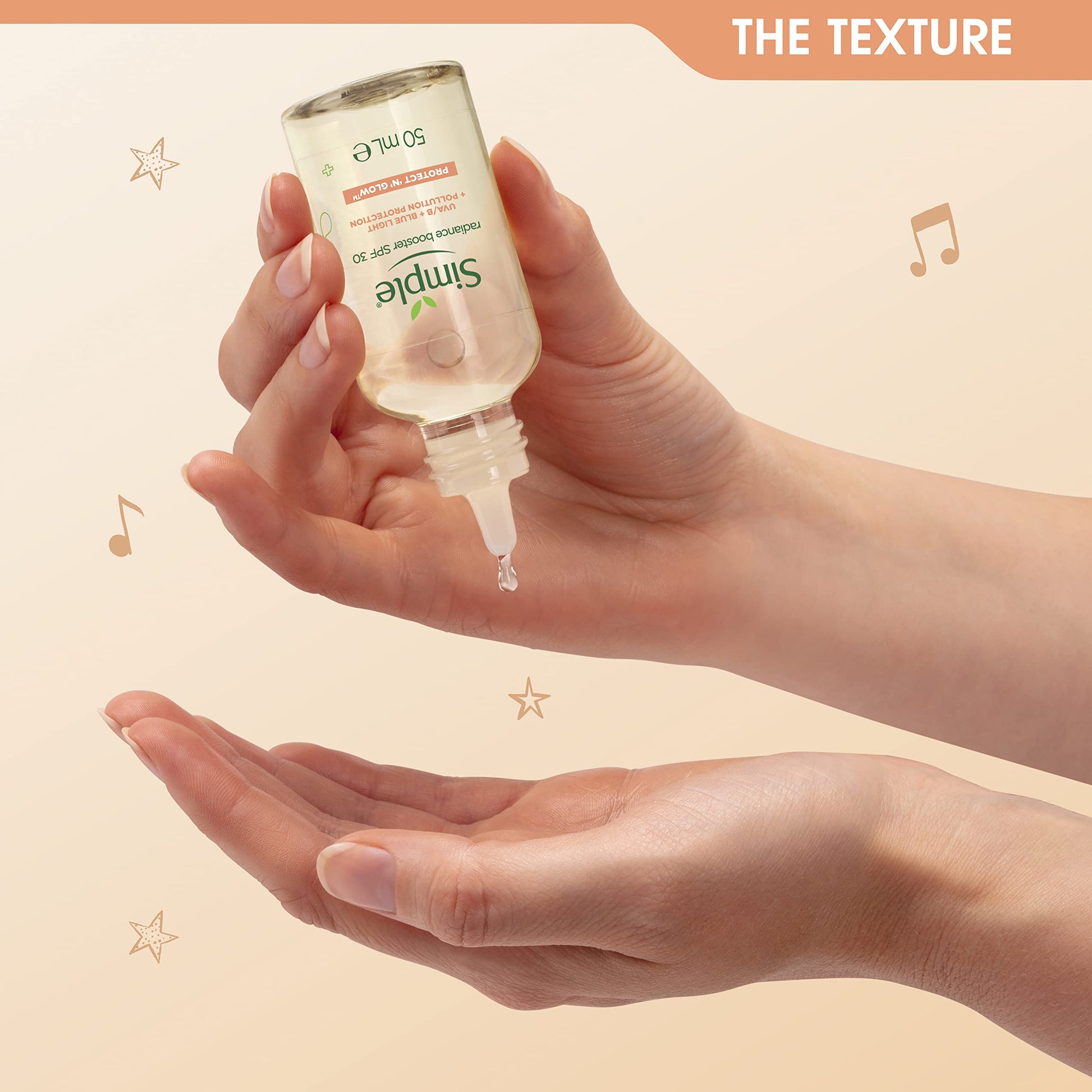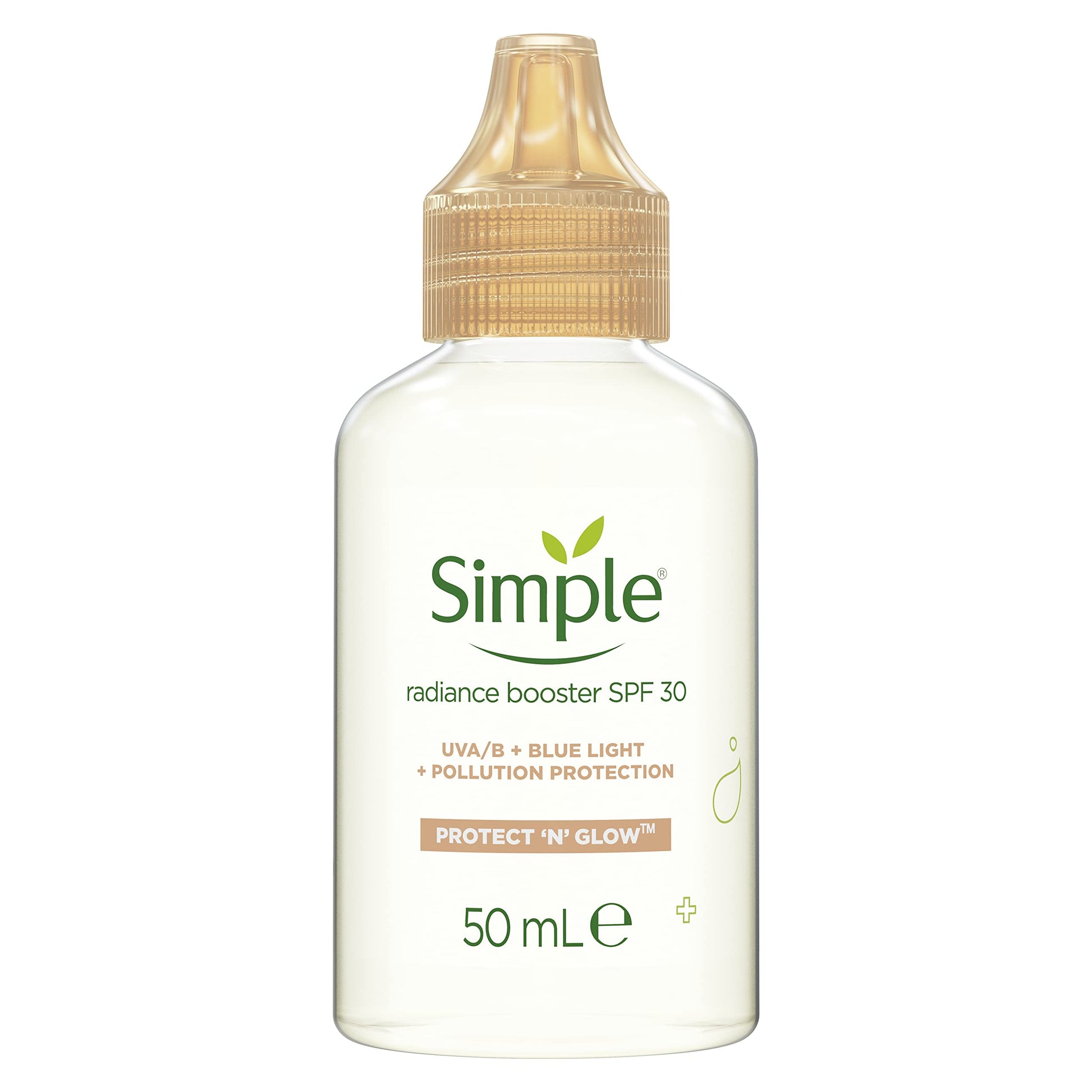 - Simple Protect ‘N’ Glow Radiance Booster SPF 30 is your new BFF for non-stop glowing skin, without that greasy feeling and unpleasant sunscreen smell – prepare to go oooh!