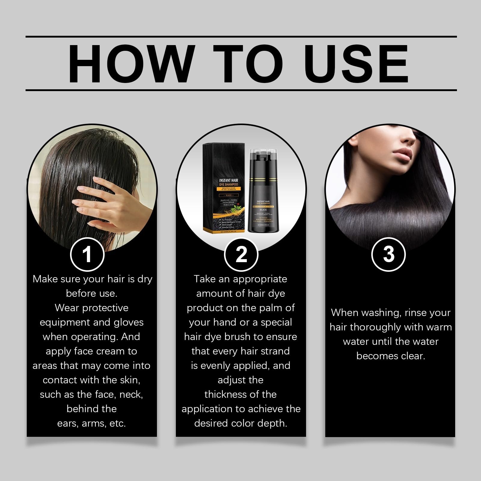 Features:1. Our hair dye dark brown are made from carefully selected ingredients and black shampoo are gentle on the hair and scalp.