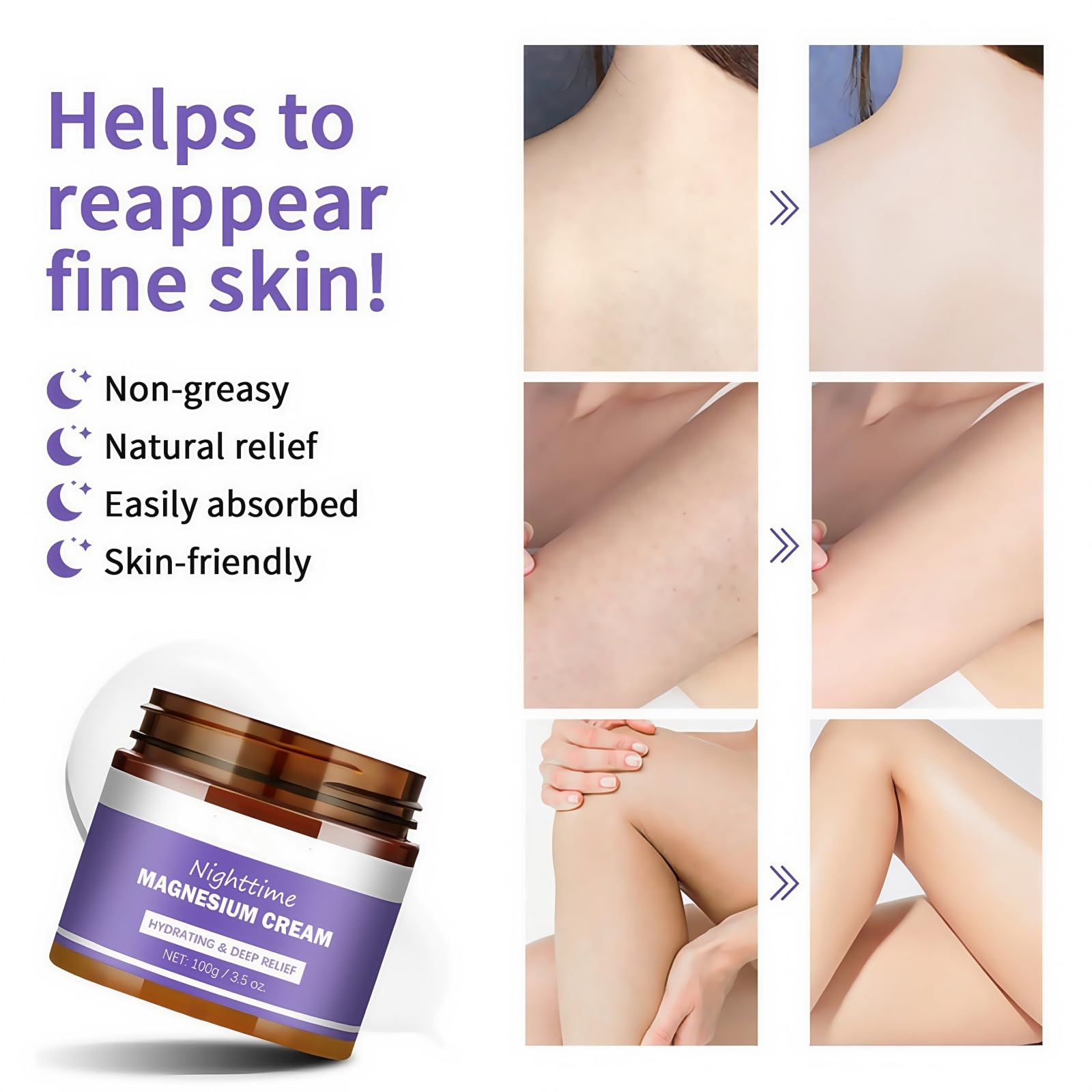 2.This magnesium cream for pain is specially added with magnesium,magnesium lotion sleep helps to relax the body and brain,thus magnesium moisturiser improving sleep quality.