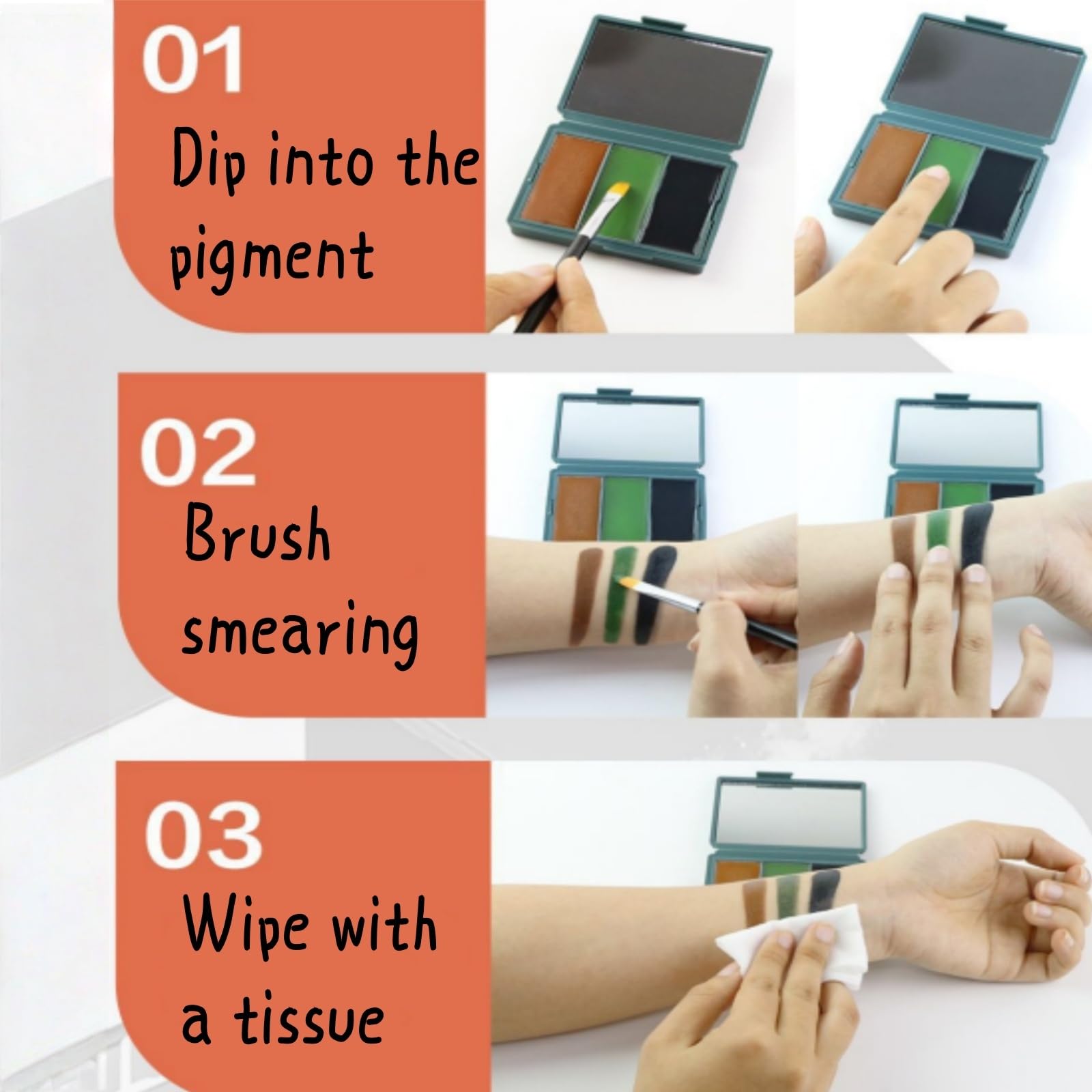 How to use1.Remove the 3 color camo face paint from its packaging.