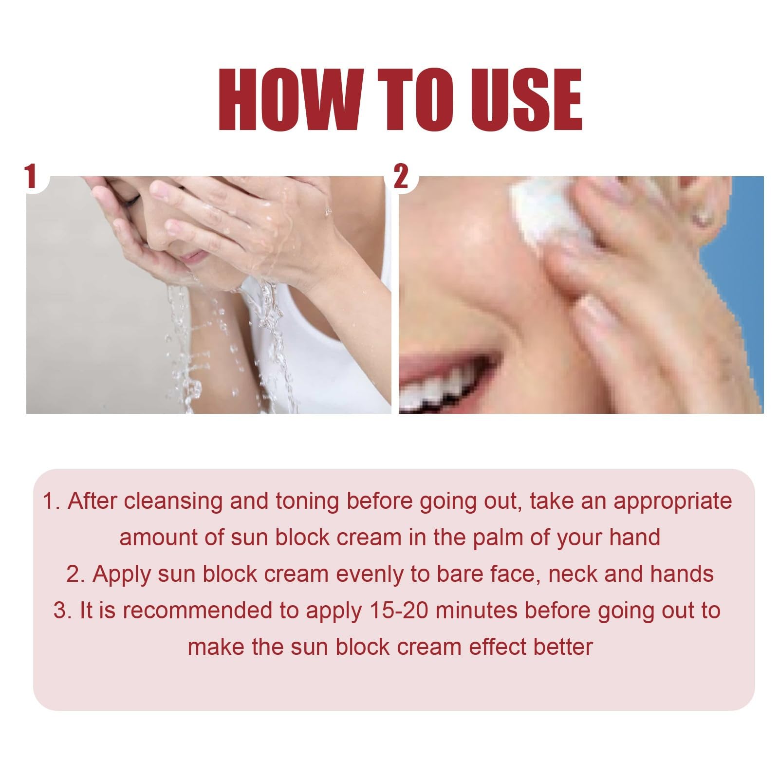 2. For each area of skin, apply 4 passes back and use our sunblock stick spf 50 forth as the last step of your skincare routine for optimal protection.
