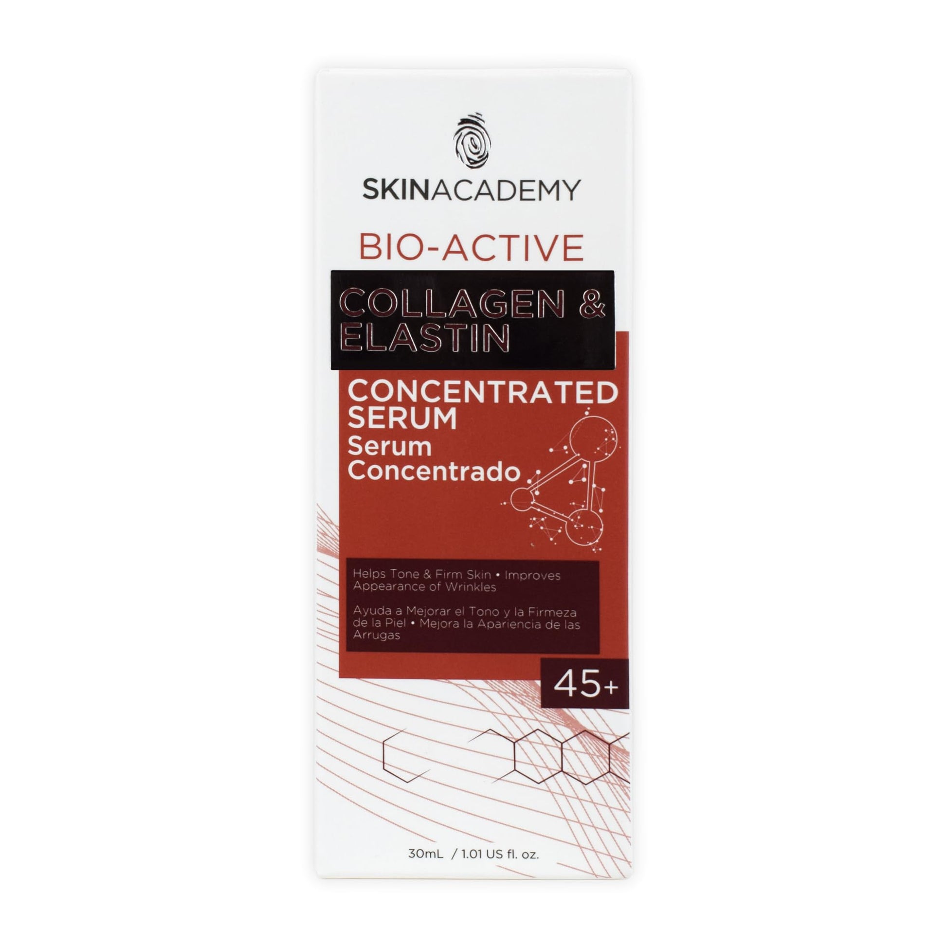 - The Bio-Active Collagen & Elastin Concentrated Serum from Skin Academy is specially formulated to address the skincare care needs after the age of 45