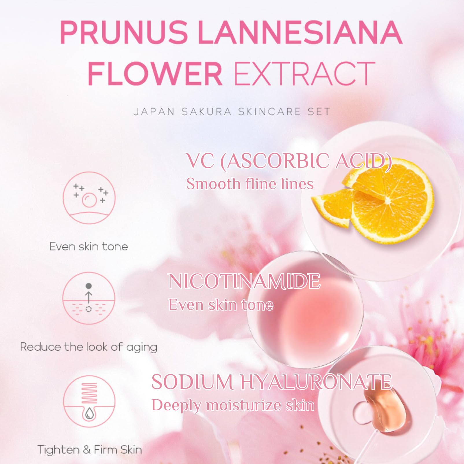 Blend the delicate cherry blossom ingredients in mask mud, peel mask, toner, exfoliator, cleanser, and face cream, and come with a makeup bag and cleanser to care for your skin in all aspects, gently and deeply cleansing and nourishing your skin to glow like cherry blossom