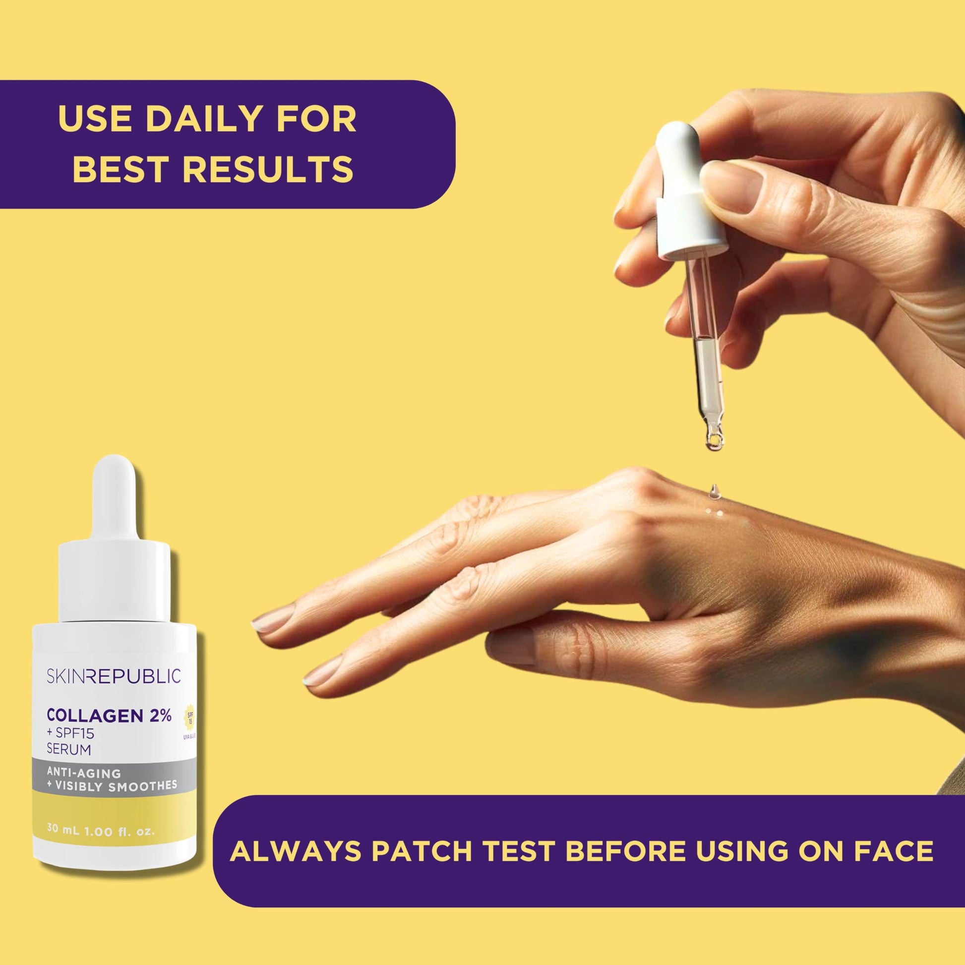 Skin Republic 2% Collagen SPF 15 Anti-Aging Serum to reduce fine lines and wrinkles, Helps keep skin plump and firm for a youthful look (30ml)