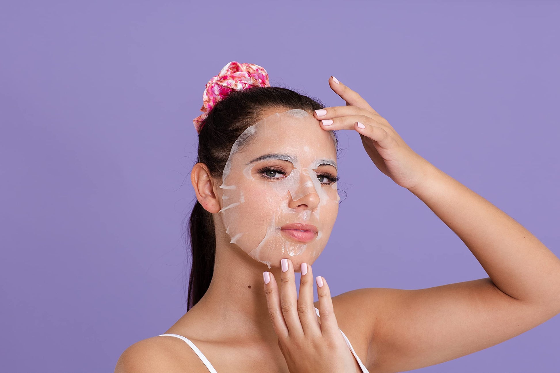 - Facial sheet mask drenched in a powerful serum for younger looking skin