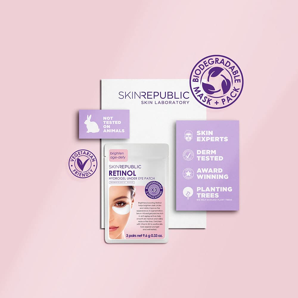 Skin Republic Retinol Hydrogel Under Eye Patches, Brightens Dark Circles, Helps Smooth Skins Texture, Enriched wih Vitamin B5, Pack of 3
