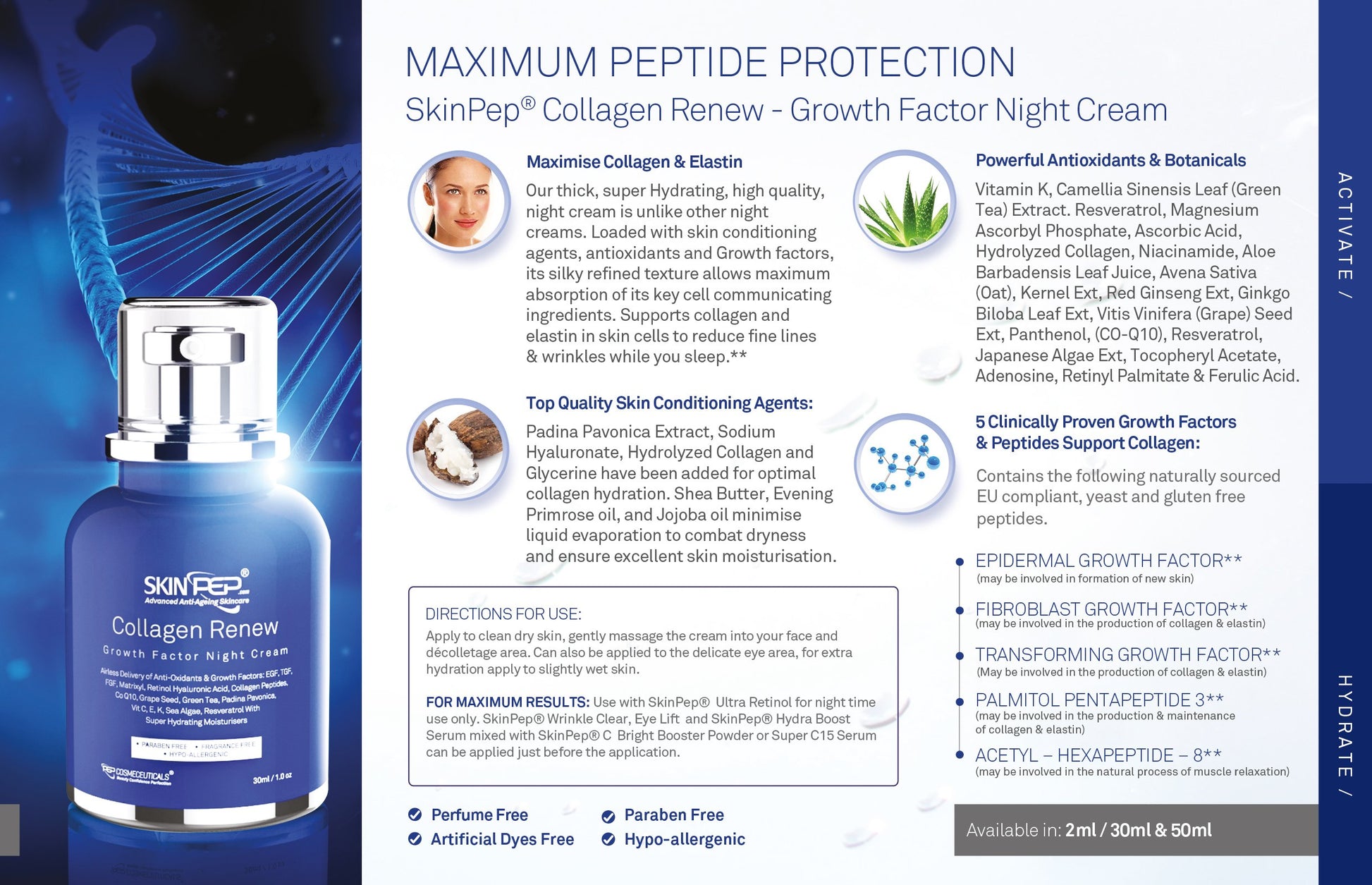 SkinPep Collagen Renew - Growth Factor Night Cream - Super Hydrating Moisturisers + Retinol + Hyaluronic Acid + Vitamin C +Collagen Peptides - SkinPep Best Choice For Premium Quality Night Cream (14ml)