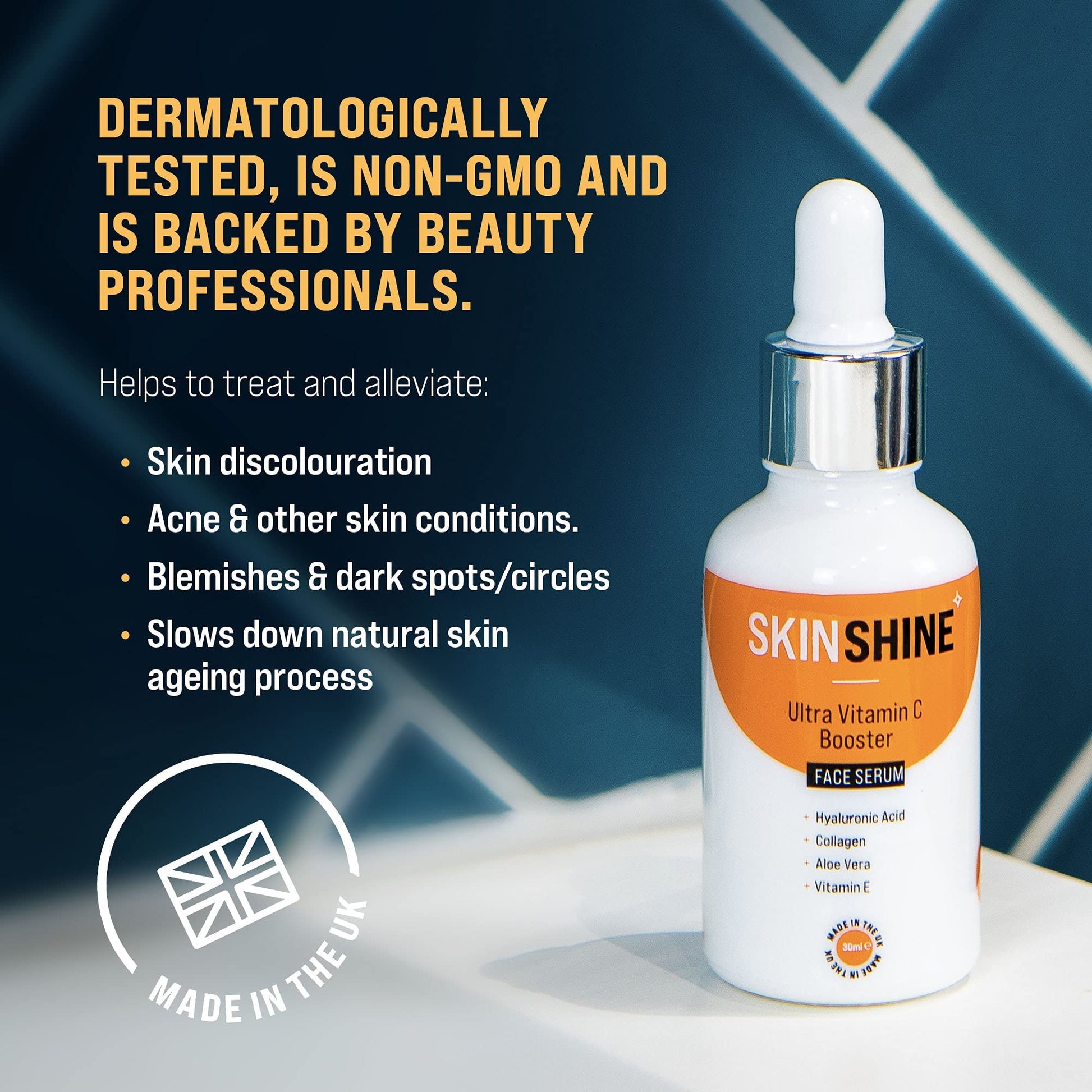 SkinShine is: ยท 100% natural ยท Dermatologically tested ยท Non-GMO ยท Backed by beauty professionals. Each ingredient in SkinShine has been carefully selected for its skincare benefits. Whatโs more, it has been created exclusively right here in the UK. While no one skin care product works for everyone, our serum is suitable for 91% of skin types..