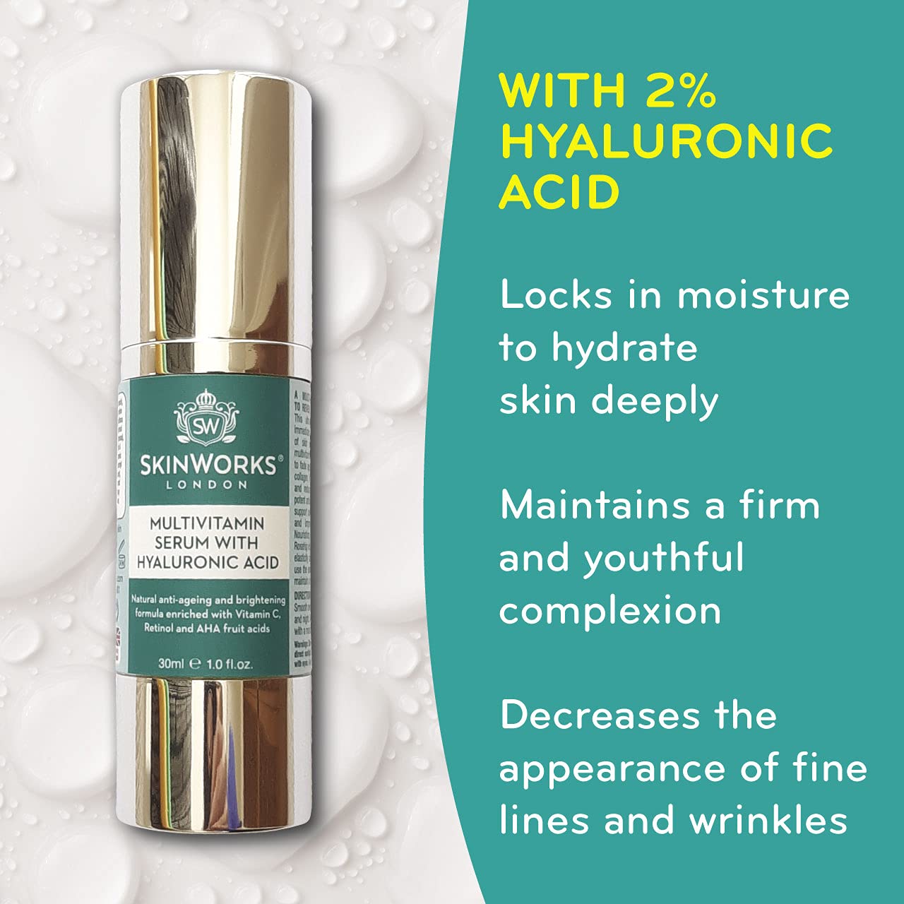 This ultra-light gel serum is absorbed immediately to deliver a concentrated dose of skin boosting nutrients. Our special multivitamin complex includes Vitamin C to fade age spots and blemishes and boost collagen, Vitamin A (Retinol) to tighten skin and reduce fine lines and Vitamin E for potent antioxidant protection. AHA fruit acids support cell renewal by naturally exfoliating and improving skin tone and texture. Nourishing Hyaluronic Acid, Argan, and Rosehip oils penetrate deeply to help improve elasticity and reduce wrinkles.