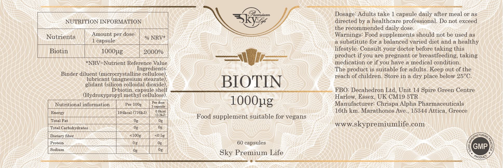 - Healthy Digestion: Sky Premium Life Biotin Supplement is formulated having in mind a rapid absorption, enjoying a 1000μg high-strength formula which reaches the human system.