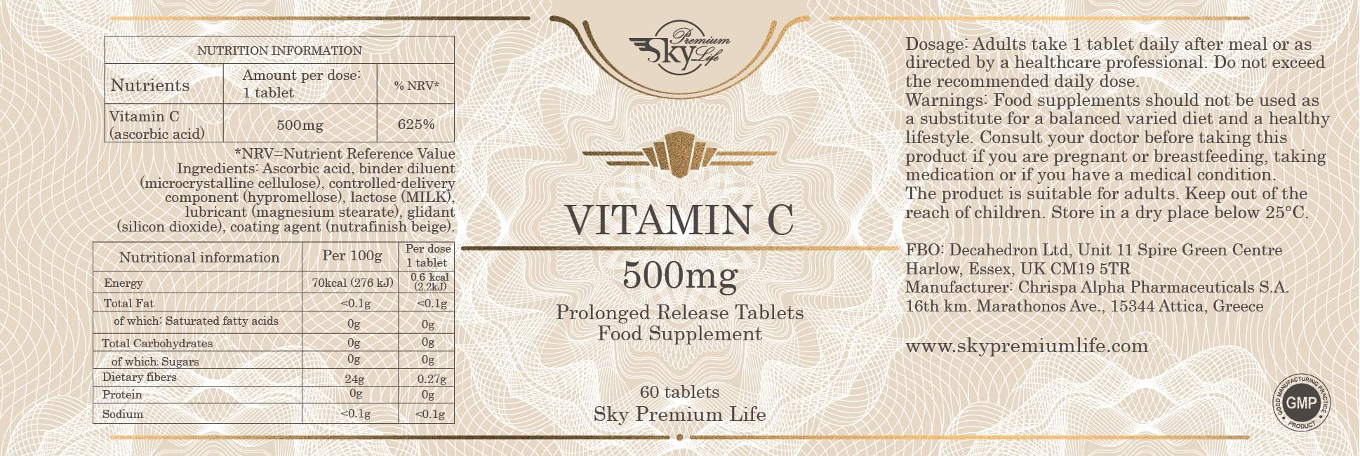 Sky Premium Life Vitamin C 500mg - 180 Prolonged Release Tablets - 180 Tablets