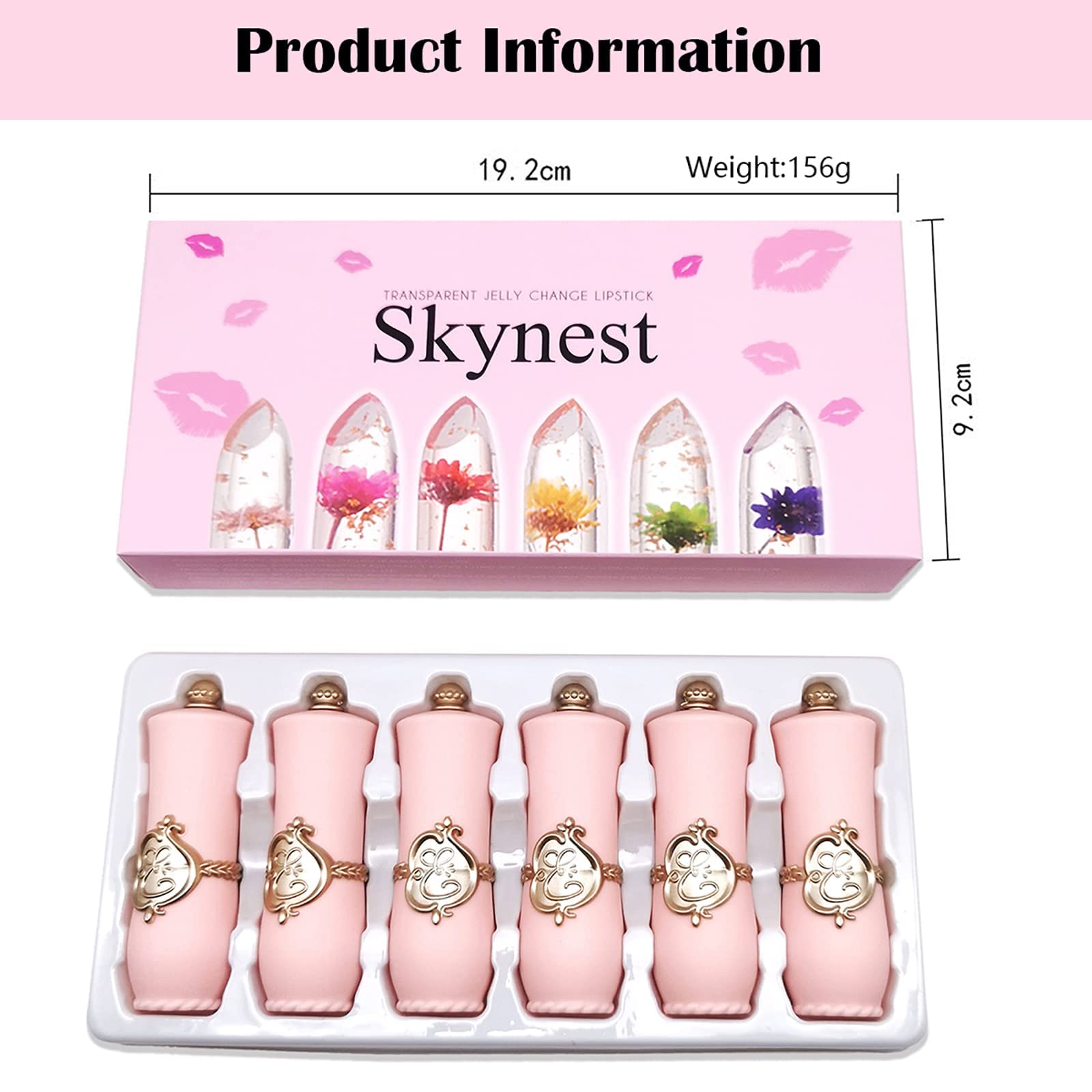Skynest Clear Flower Jelly Lipstick, 6 Packs Nutritious Moisturizer Lip Balm Temperature Color Change Lipstick Matte Long Lasting Lip Gloss (Pink)