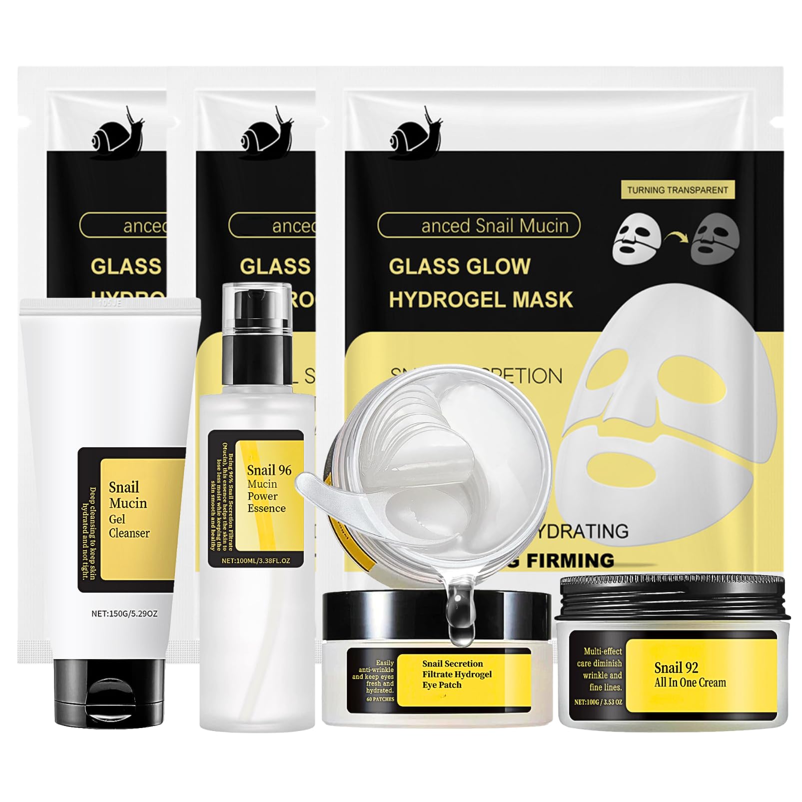 Snail Mucin Skin Care Set For Women, 7 PCS Snail Skin Care Sets & Kits For Girls, Facial Kit with With Face Mask, Cleanser, Serum, Face Cream, Eye Patches, Face Mask Basic Improve Dull Skin