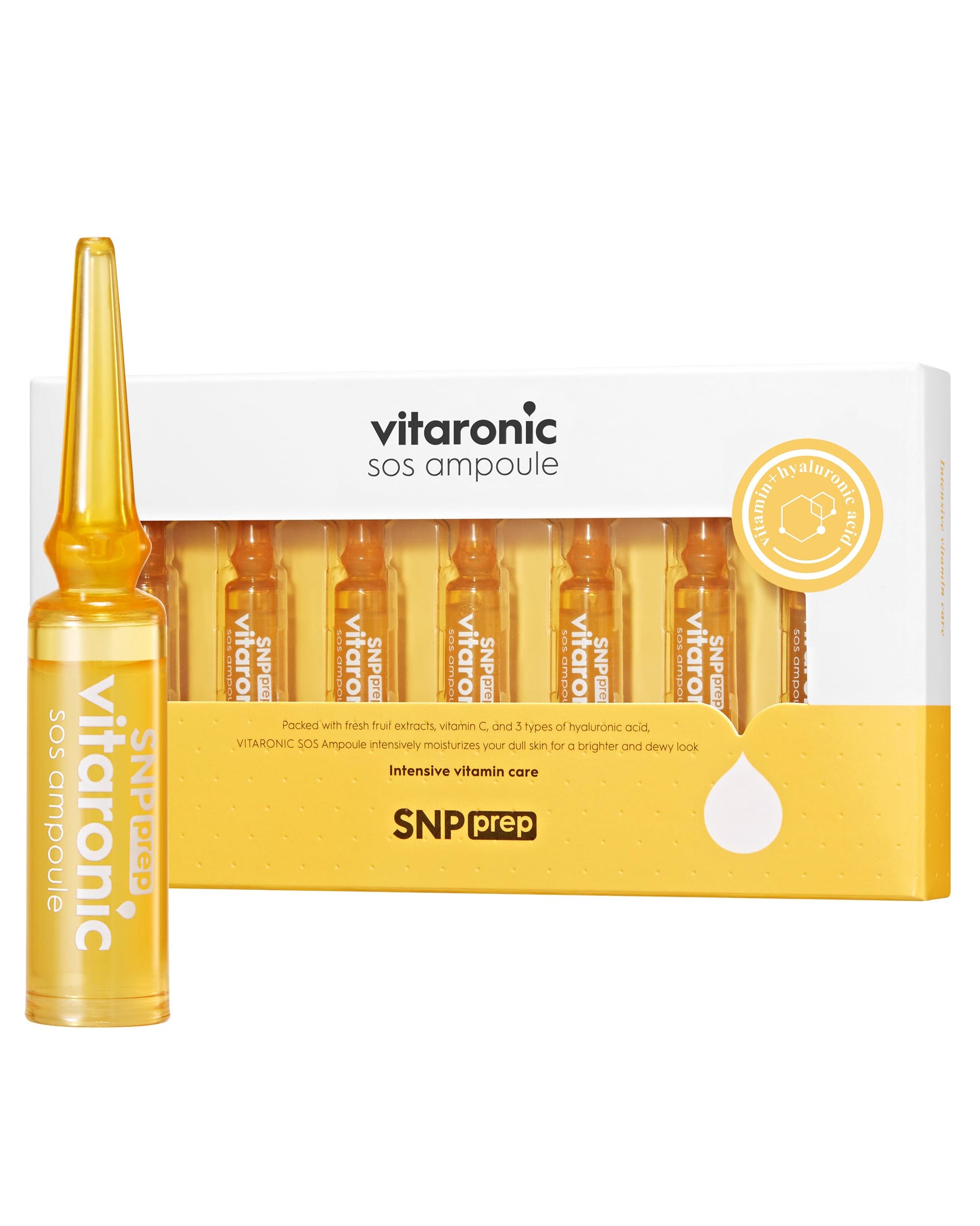 SNP Prep Vitaronic SOS Ampoule – Korean 7-Day Vitamin C Serum with Panthenol, and Hyaluronic Acid for Radiant Glow, Skin Vitality, and Dewy Hydration Care, 1.5ml x 7ea