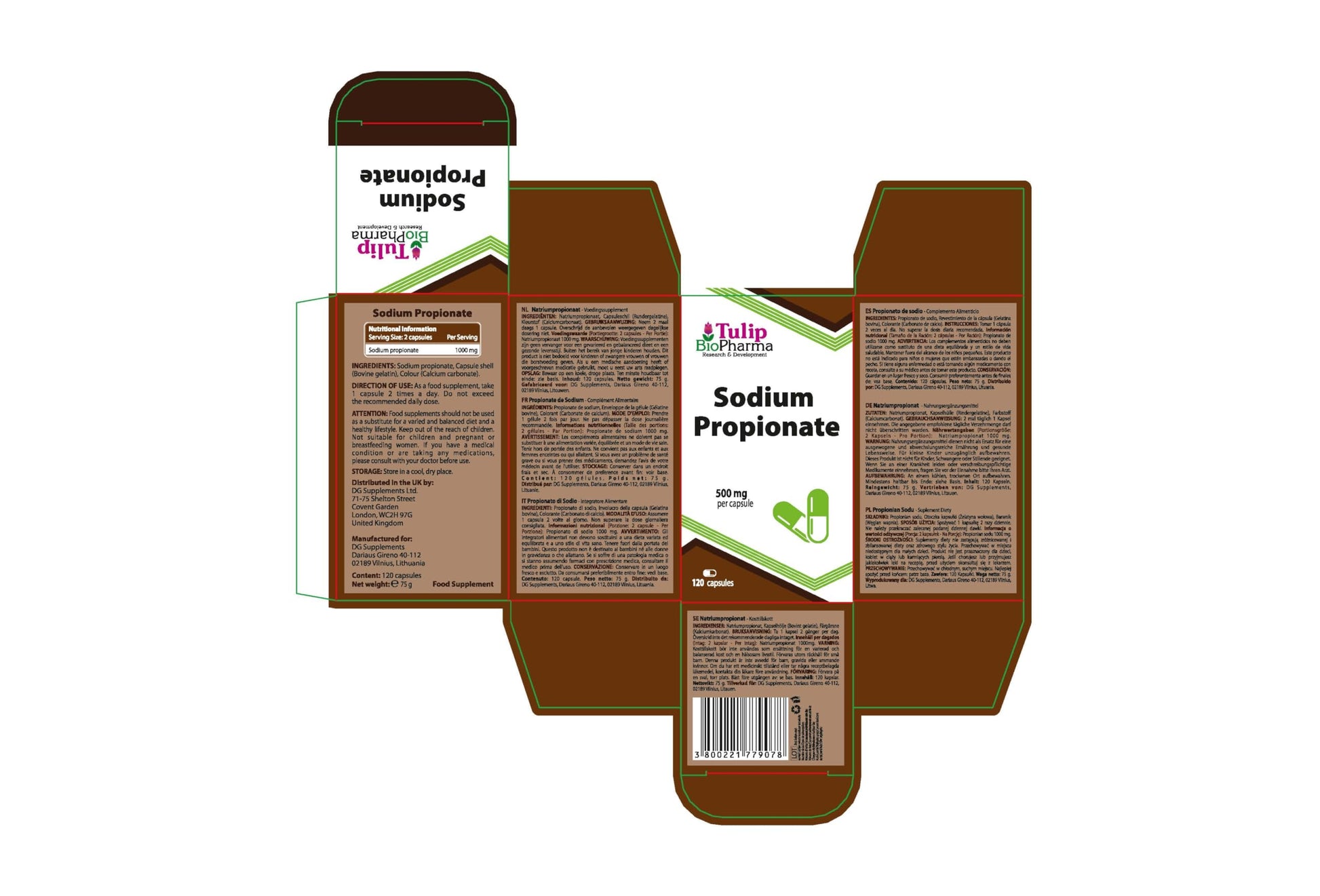 Sodium Propionate (Propionic Acid) 500mg 120 Capsules, 3rd Party Lab Tested, High Strength Supplement, Gluten and GMO Free