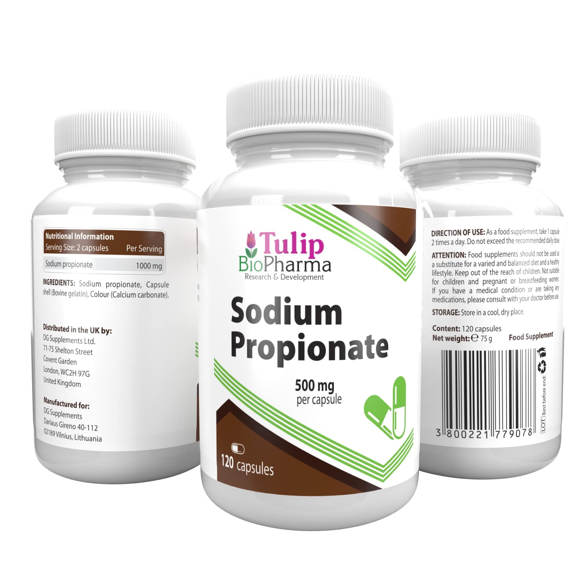Sodium Propionate (Propionic Acid) 500mg 120 Capsules, 3rd Party Lab Tested, High Strength Supplement, Gluten and GMO FreeMore Info