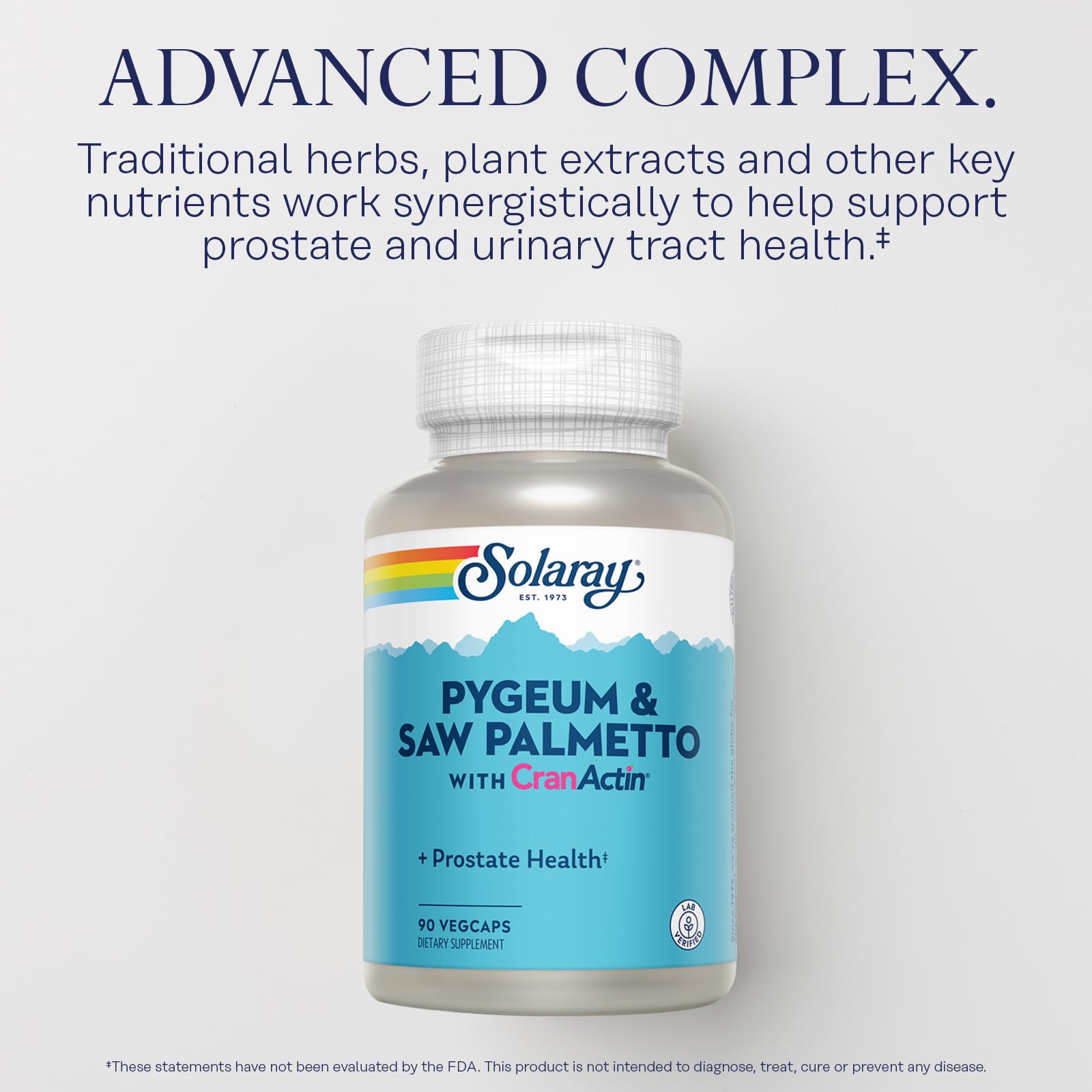 SOLARAY Pygeum and Saw Palmetto with CranActin - Prostate Health Supplement with Pygeum Bark, Saw Palmetto Extract and Cranberry Extract, Lab Verified, 60-Day Guarantee (15 Servings, 90 VegCaps)
