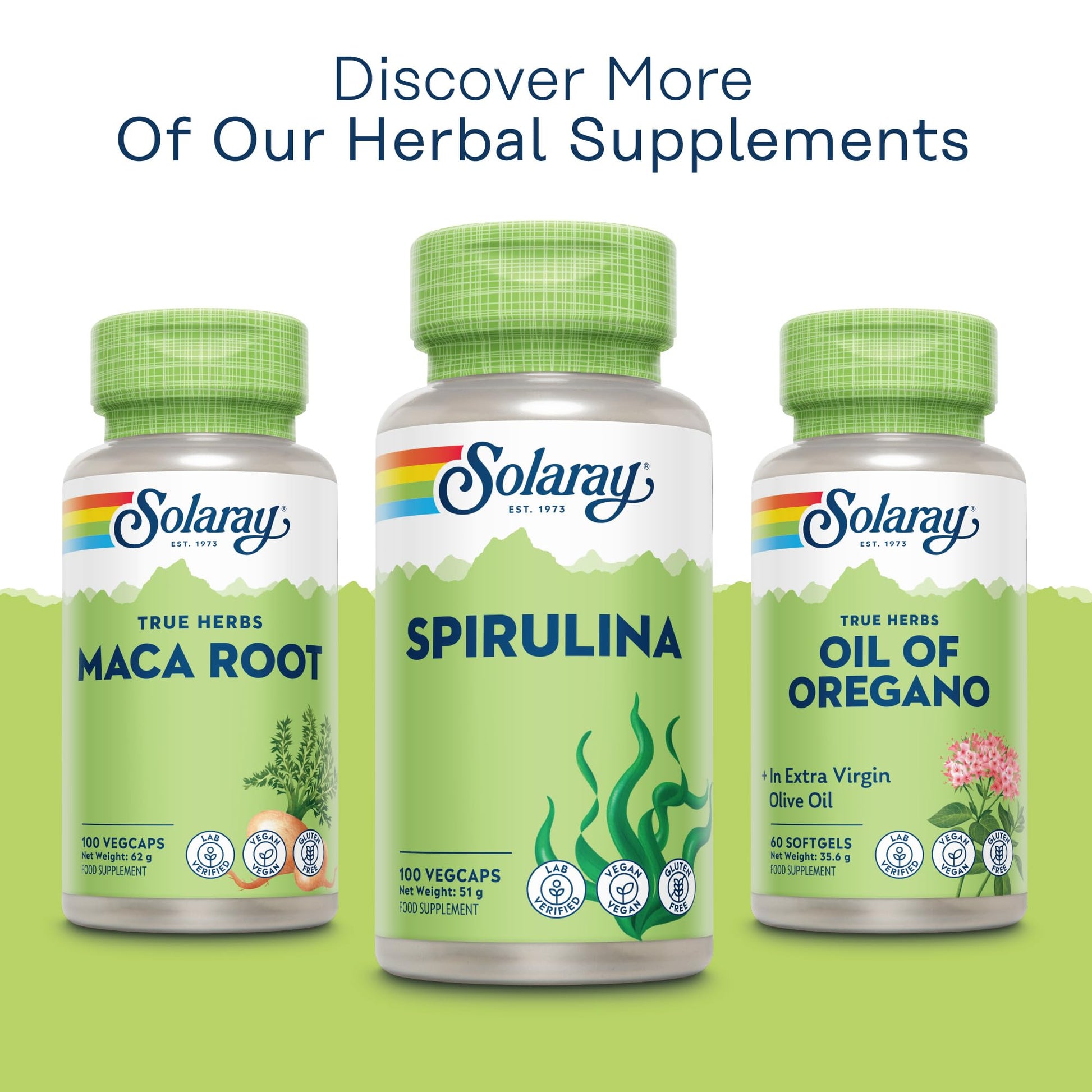 SOLARAY Spirulina Algae - 100 Vegan Capsules not Tablets or Powder - High Strength Spirulina Supplement with Added Vitamin A 70mcg - Lab Verified - Solaray