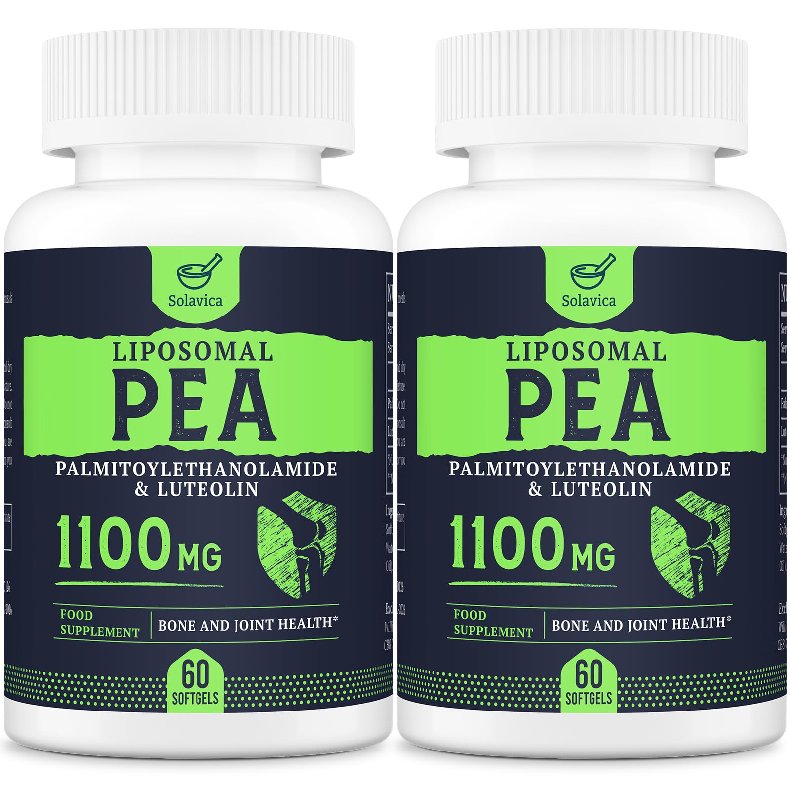 Solavica Liposomal Palmitoylethanolamide (Pea) 1100mg with Luteolin, Micronized Pea - High Purity, Super Absorption and Optimal Effectiveness, 60 Softgels (Pack of 2)