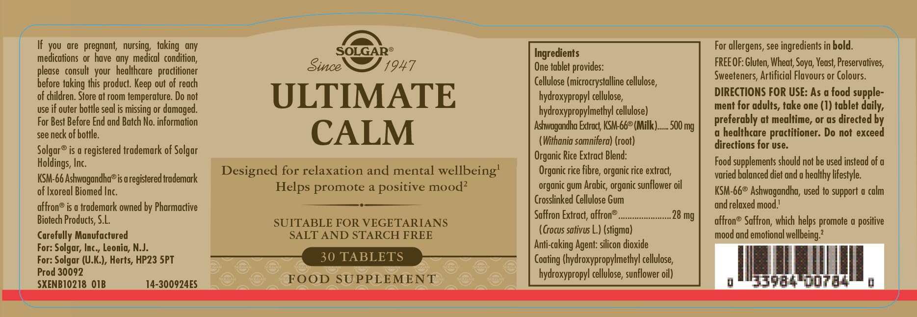 SOLGAR Solgar Ultimate Calm Tablets - Pack of 30 - Supports Relaxation and Mental Wellbeing - Vegan and Gluten Free Gold