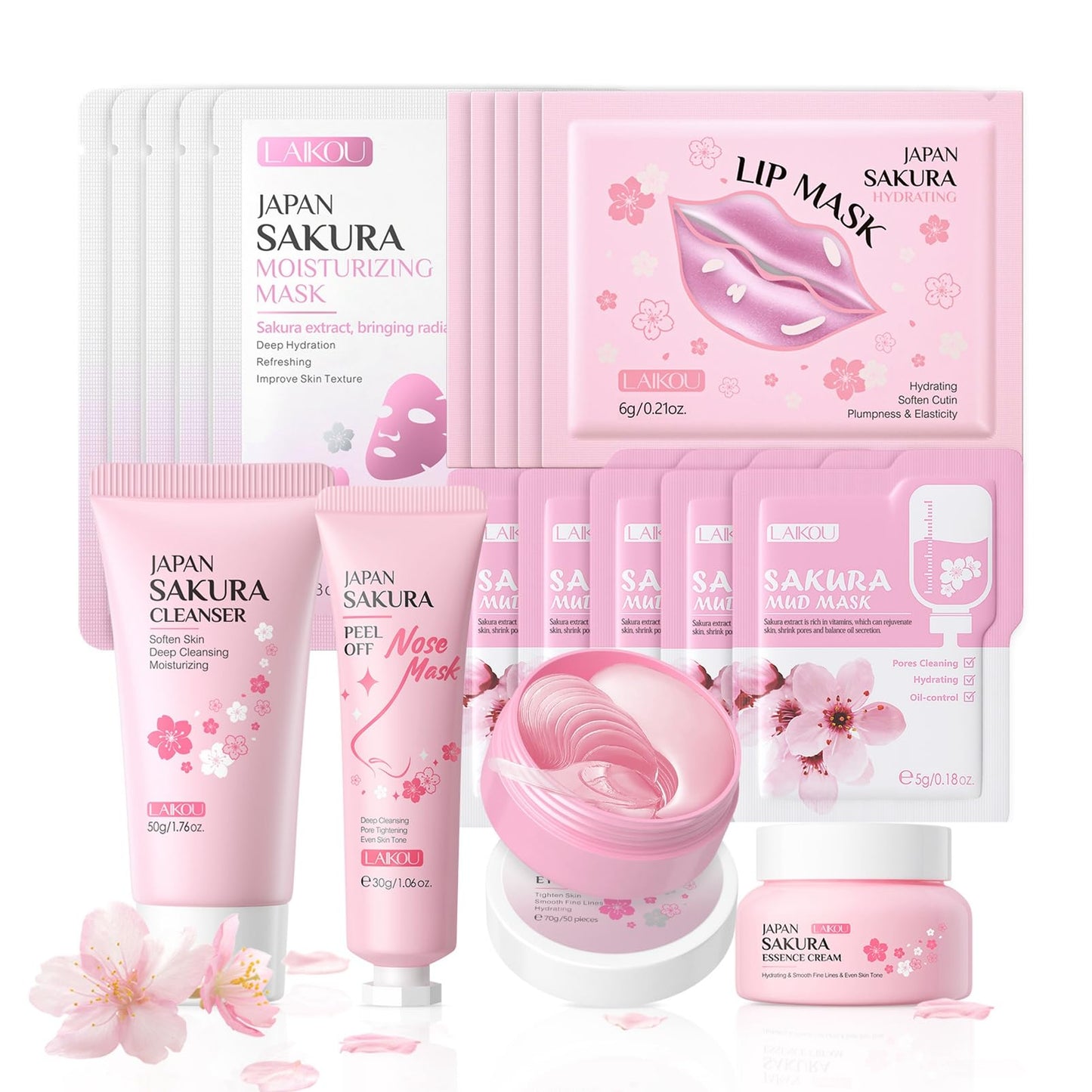 19Pcs Sakura Skin Care Sets & Kits, Skin Care Set, Women Beauty Gift Set, Girls Women Pamper Set, Skin Care Teen Girl Gifts