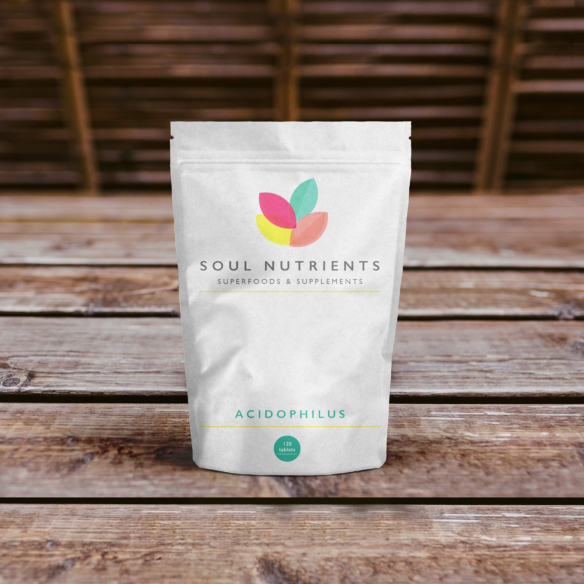 Lactobacillus Acidophilus Tablets - Our tablets contain 500 million CFUs per tablet, the British Cited value. 120 Tablets giving you a 4 month supply. They are a carefully formulated probiotic supplement for amazing gut health. Maximum Strength Probiotic Supplement – Free from nuts, lactose, gluten, artificial colours and flavours our bio-cultures supplements are made from, pure, contaminant-free ingredients. With 500 million CFU of viable bacteria per serving, our product is one of the strongest on the market. Lactobacillus acidophilus is a bacteria found in the stomach and intestines. This probiotic (live microorganisms that maintain the 'good' bacteria in our gut) is one of the main 'friendly' bacterias and is found in many dairy products, such as yoghurt. The bacteria ferment at an optimal pH of 5.0 and develops best at temperatures of 37°c. The bacteria was given its name due to its role in breaking down sugar in milk (lactose) into lactic acid. Acidophilus Lactobacillus is present in many dairy products, so this vegan probiotic supplement is perfect for those who don’t consume dairy. Carrying high levels of unhealthy bacteria in your gut may also be a leading culprit behind weight gain, brain fog and mood swings, some skin conditions, autoimmune issues, and more. The human Gut is a host to an incredible diversity of bacteria, enzymes, fungi and other microbes, collectively known as the Gut microbiome. Diversity in probiotic strains in your gut is just as important to your digestive and immune health. Suitable for Vegetarians and Vegans and Gluten Free - Soul Nutrients Lactobacillus Acidophilus Vegan Probiotic Tablets contain NO gelatin, artificial colouring agents, flavours, sweeteners, preservatives, added sugar or salt, lactose, soya, gluten, wheat or yeast! No nasty plastic bottles - Just eco friendly, airtight, resealable packaging. Beautifully packaged direct to your door - Letterbox friendly, no need to wait in for a delivery!More Info