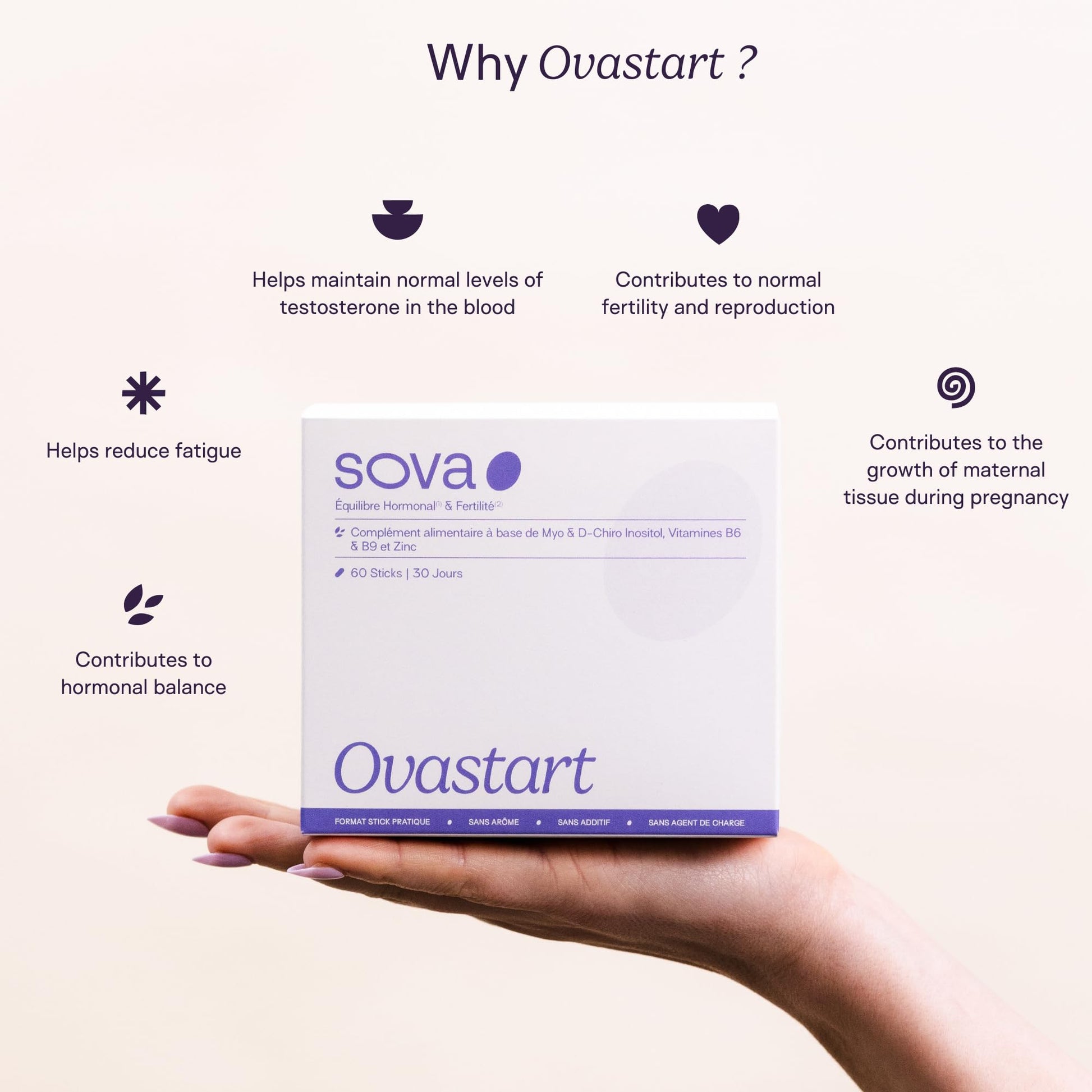 SOVA - Ovastart - PCOS, Fertility, Hormonal Balance - Highly Dosed Myo-inositol & D-chiro inositol - Zinc, Vitamin B6, and Quatrefolic® Vitamin B9-60 sticks