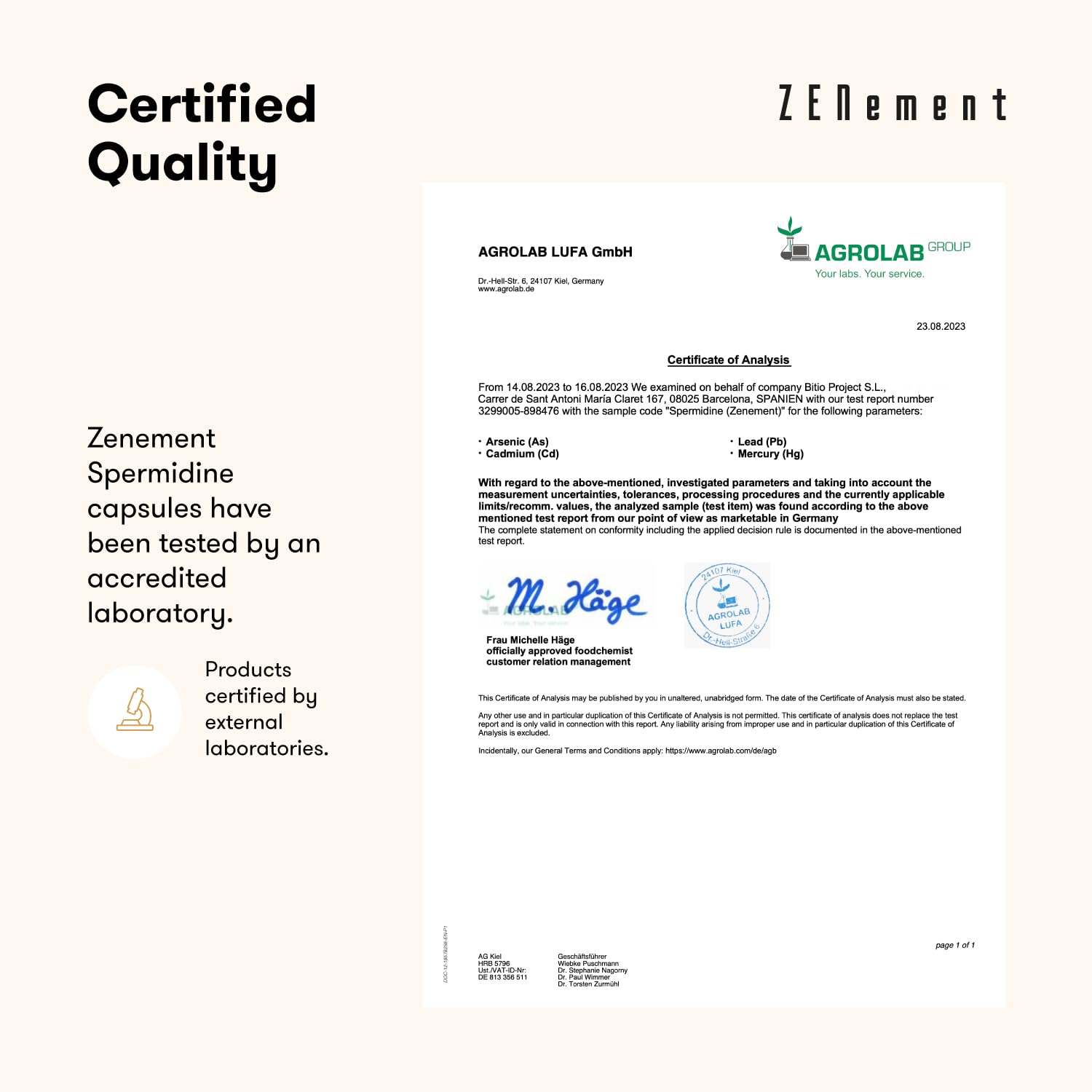 Spermidine, 2mg per Capsule with Vitamin B1 and Zinc | 180 Wheat Germ Extract Capsules | Mitochondrial Rescue, Immune System and Cell Renewal | Vegan, Additives Free | Zenement