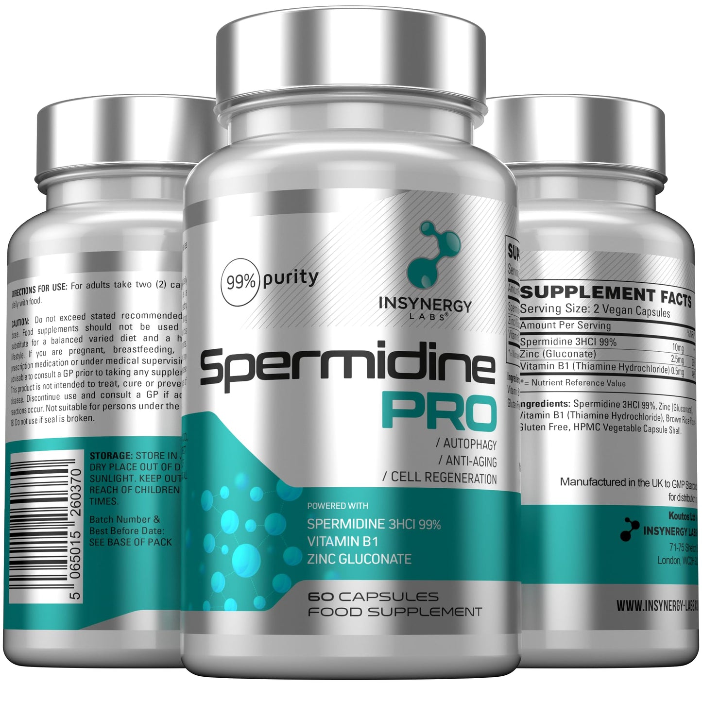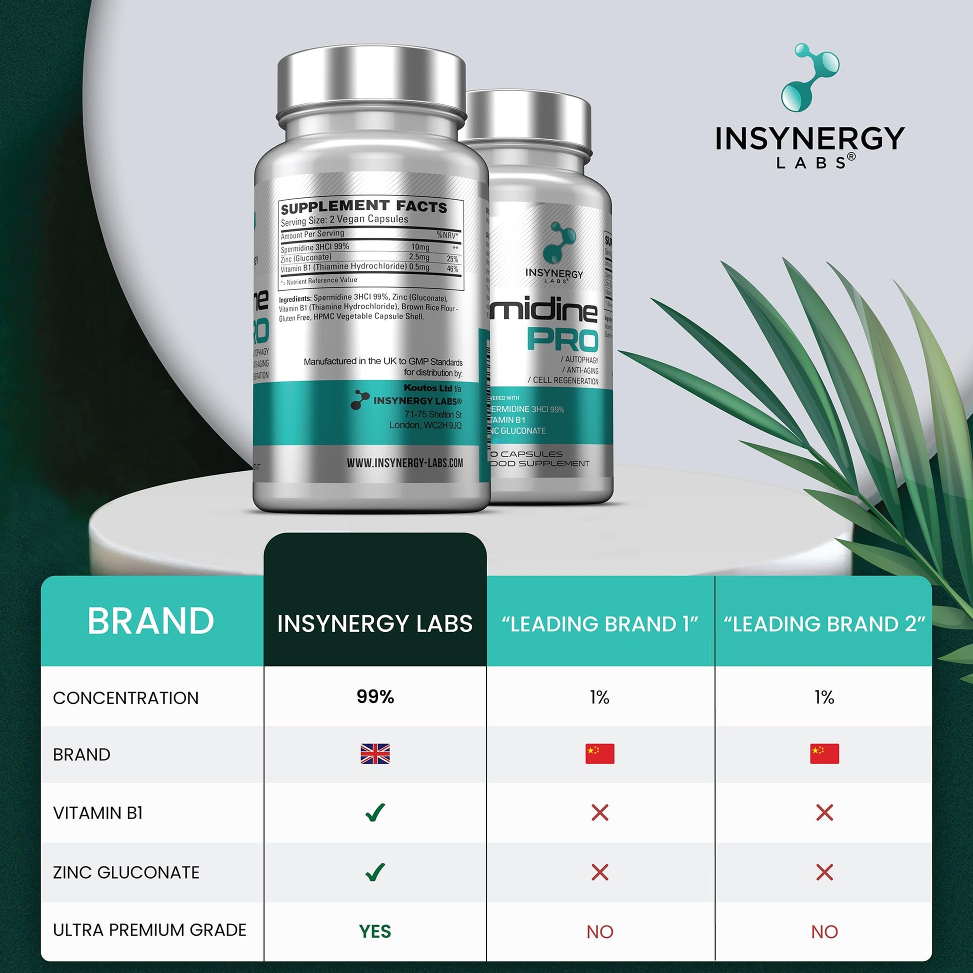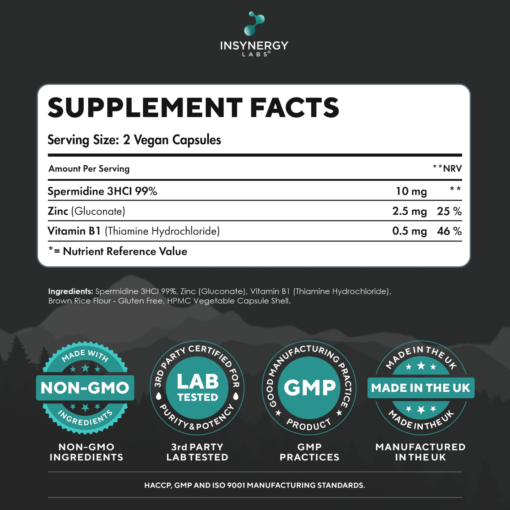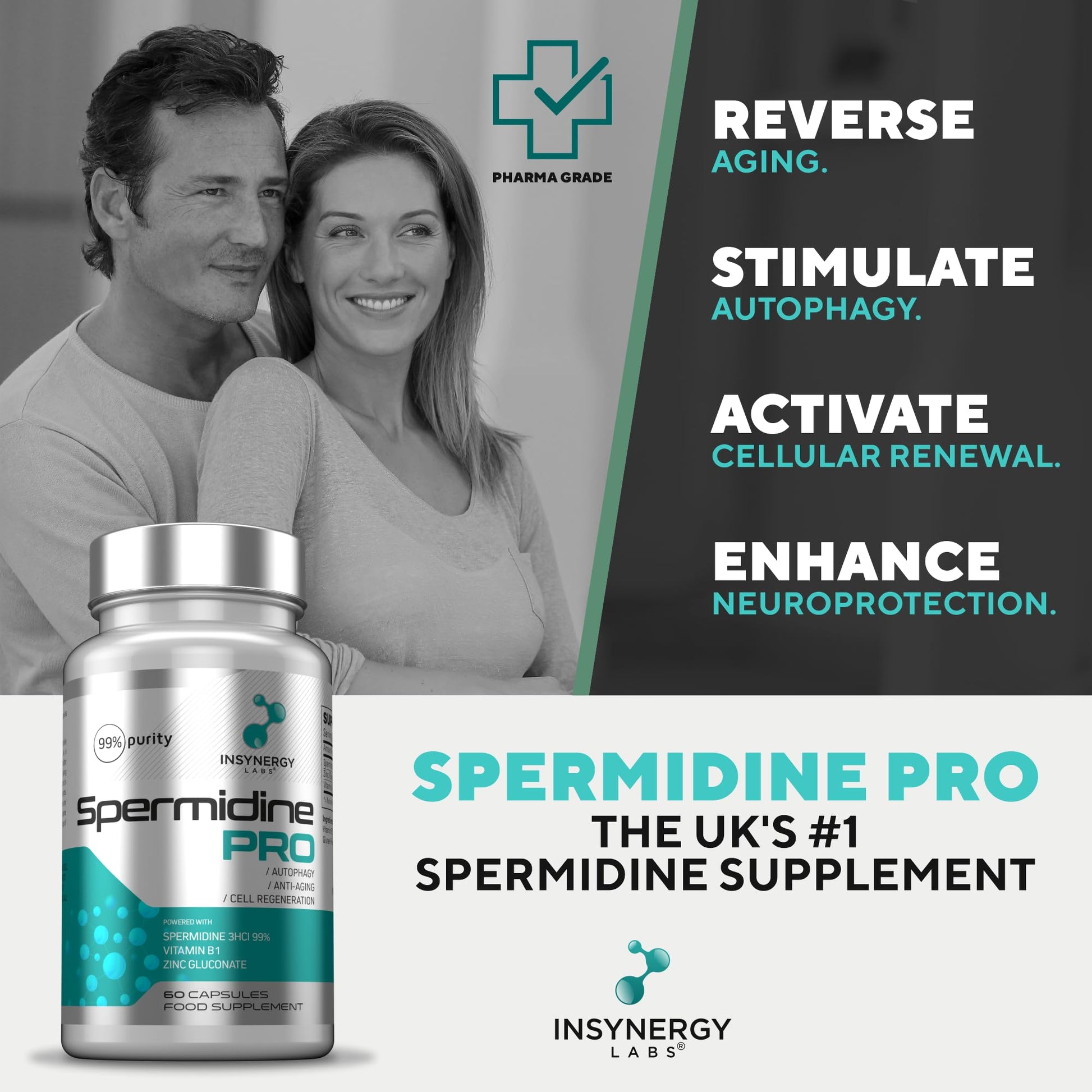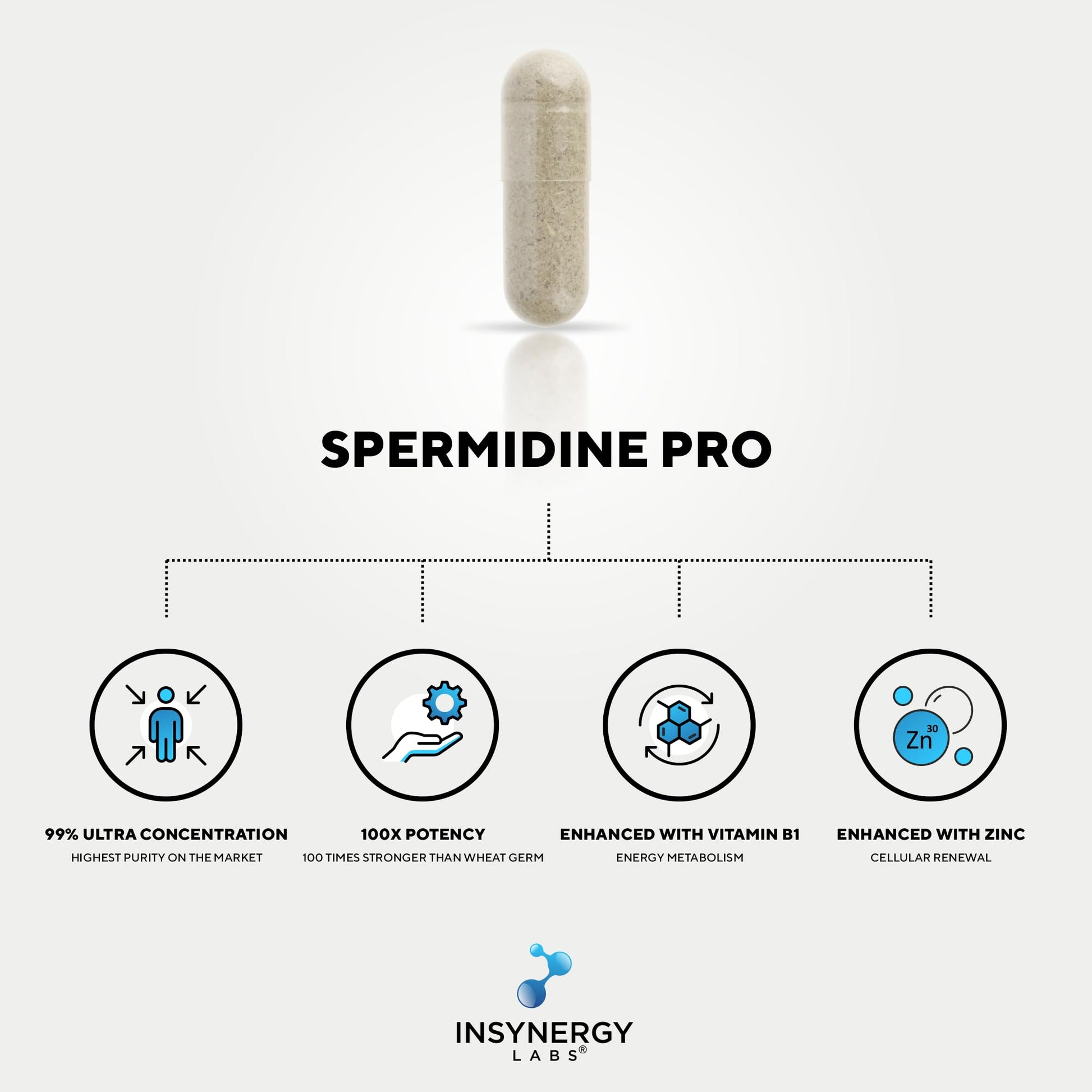 Spermidine PRO (99% Purity Elite Grade) Pure Spermdine 100X Potency vs Wheat Germ Spermidine Supplements, Enhanced with Zinc +Vitamin B1, Spermidine Supplements 10mg 60 Vegan Spermidine Capsules