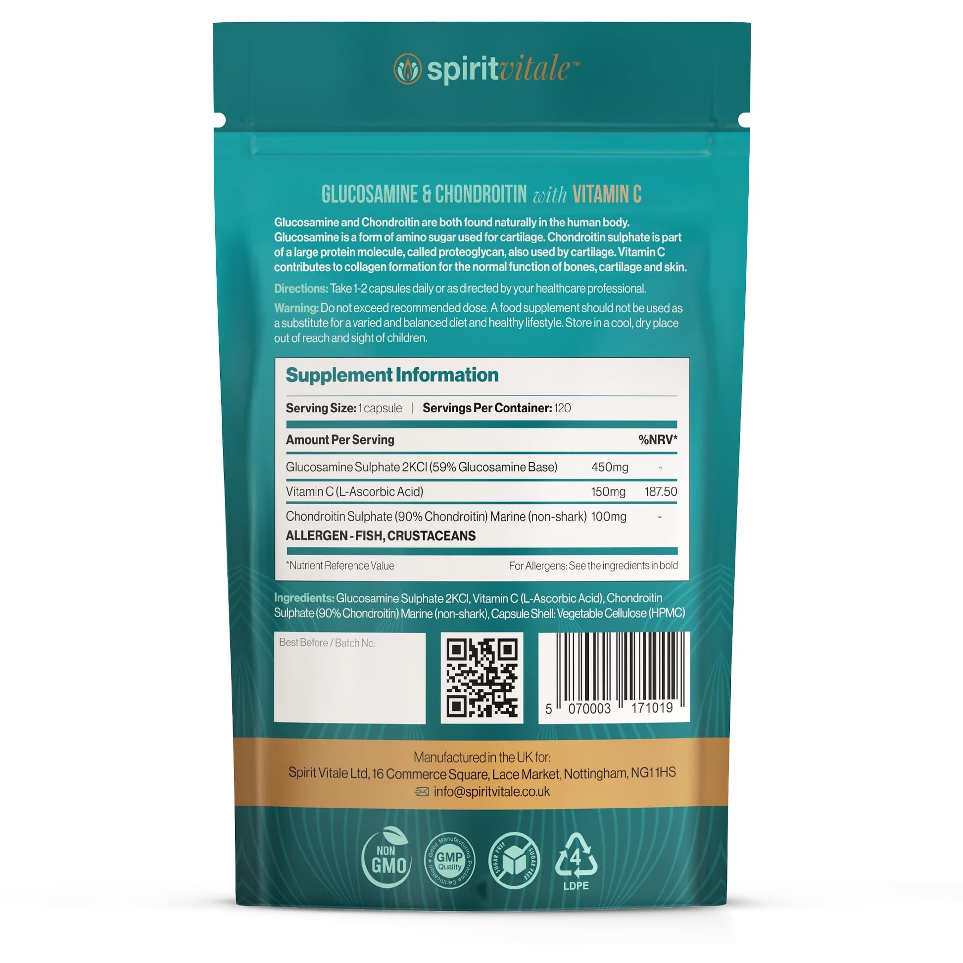 Glucosamine and Chondroitin | 120 Capsules | Enhanced with Vitamin C | Premium UK Made Food Supplement for Men and Women | No Fillers or Excipients | Spirit VitaleMore Info