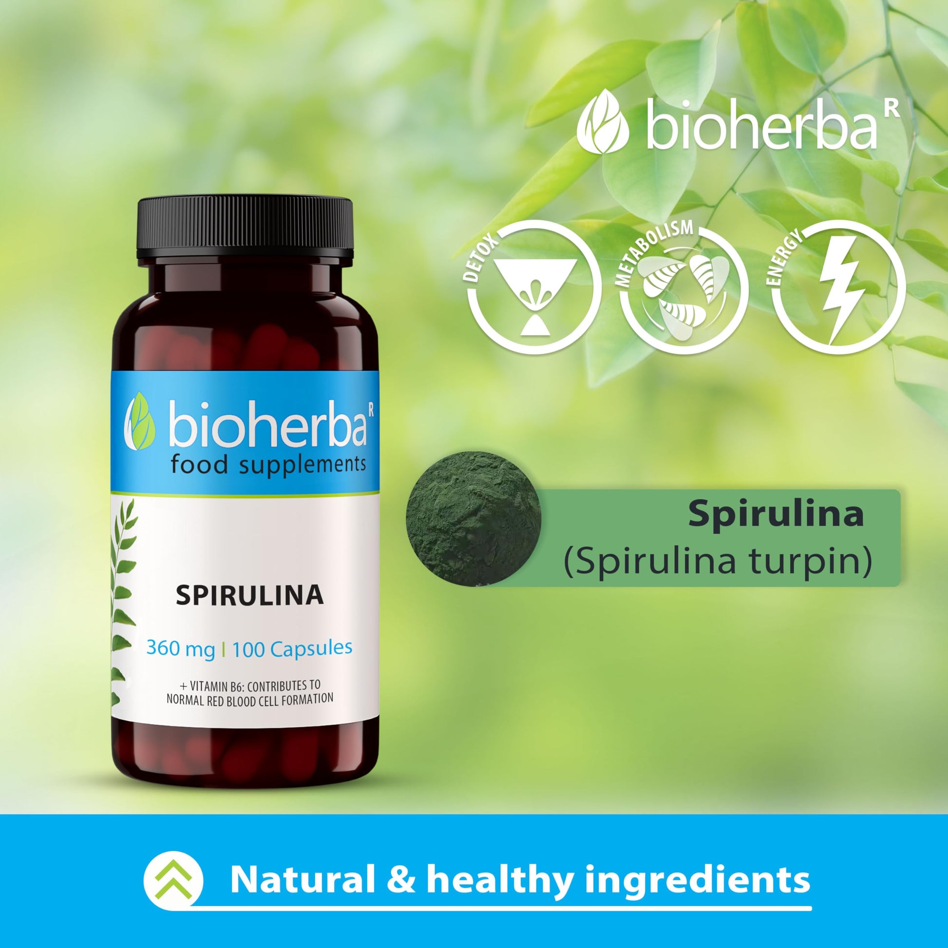 SPIRULINA Capsules 360 mg - 300 pcs Premium Superfood Supplement for Health and Vitality by BIOHERBA