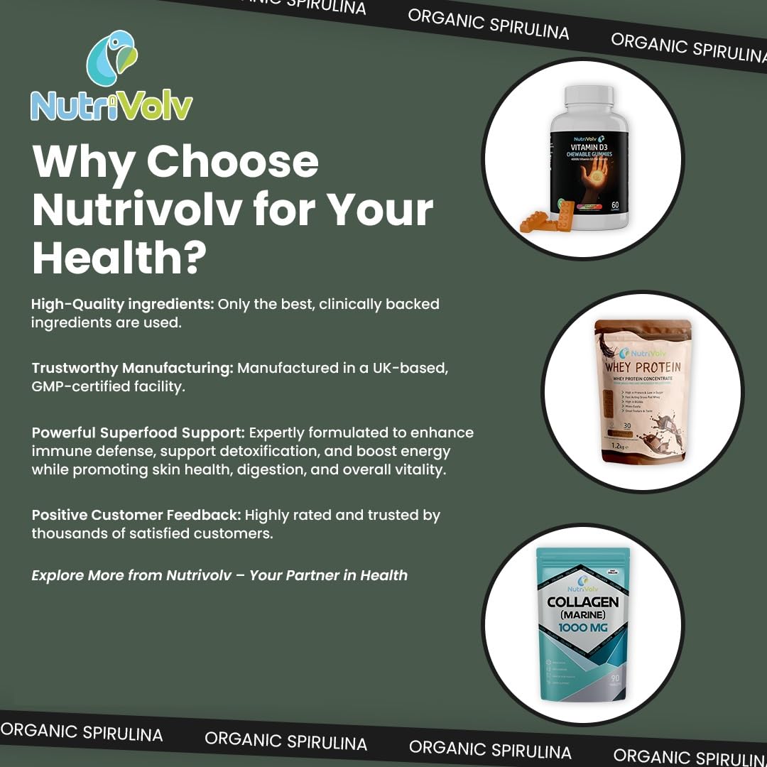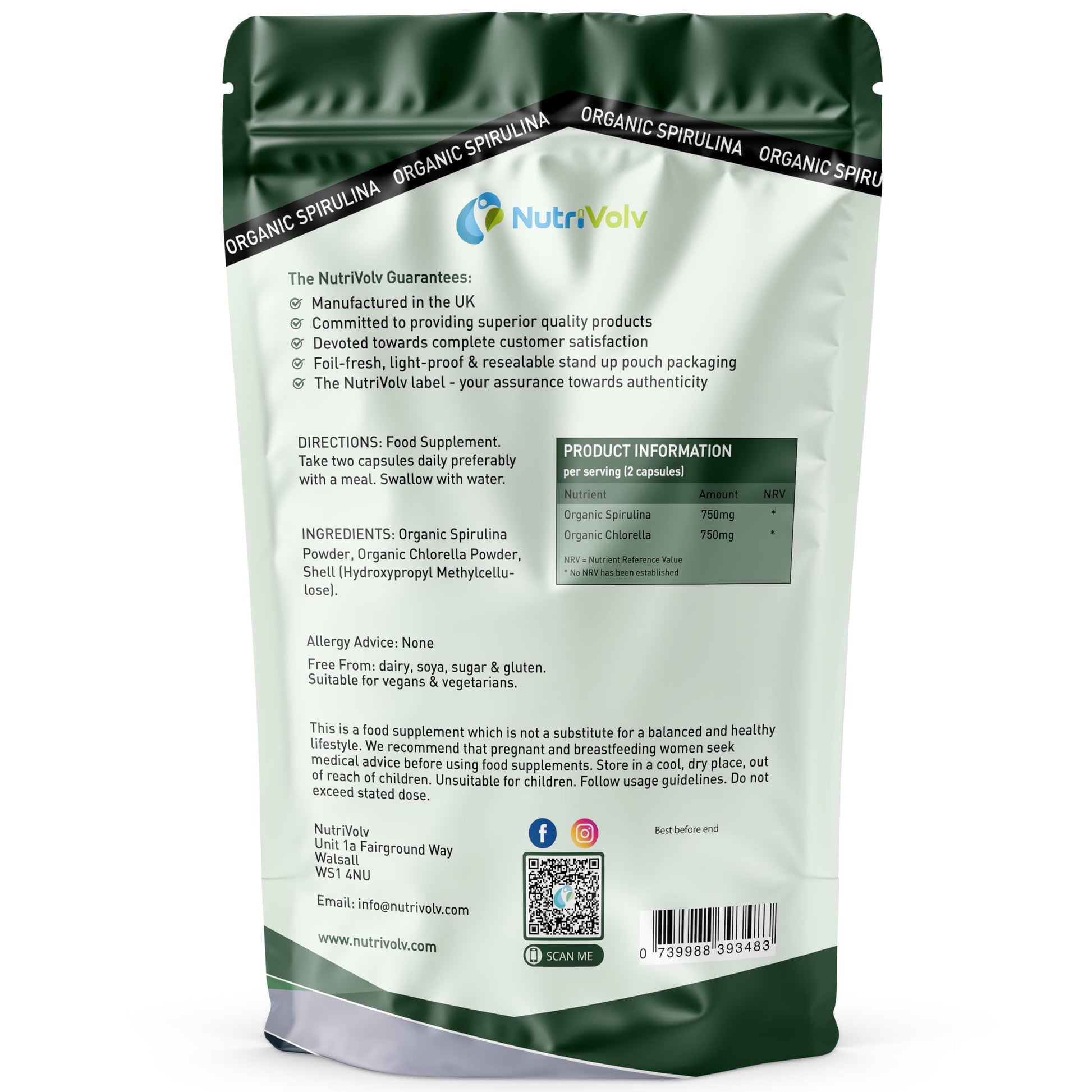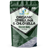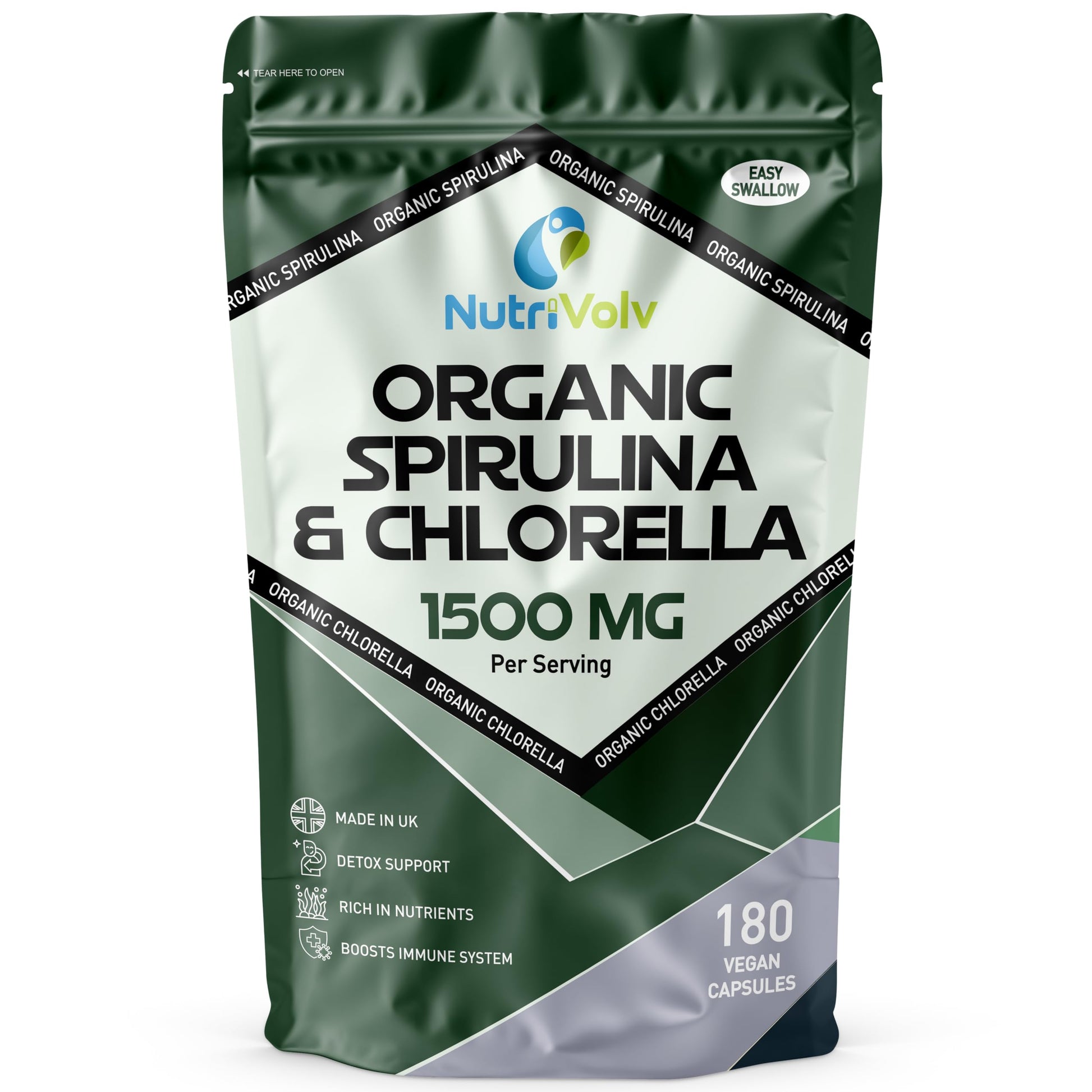 Spirulina & Chlorella | 3 Months Supply | 180 Capsules | 1500mg Per Serving | Pure - No Additives | Vegan & Non-GMO | Broken Cell Wall | by NutriVolv
