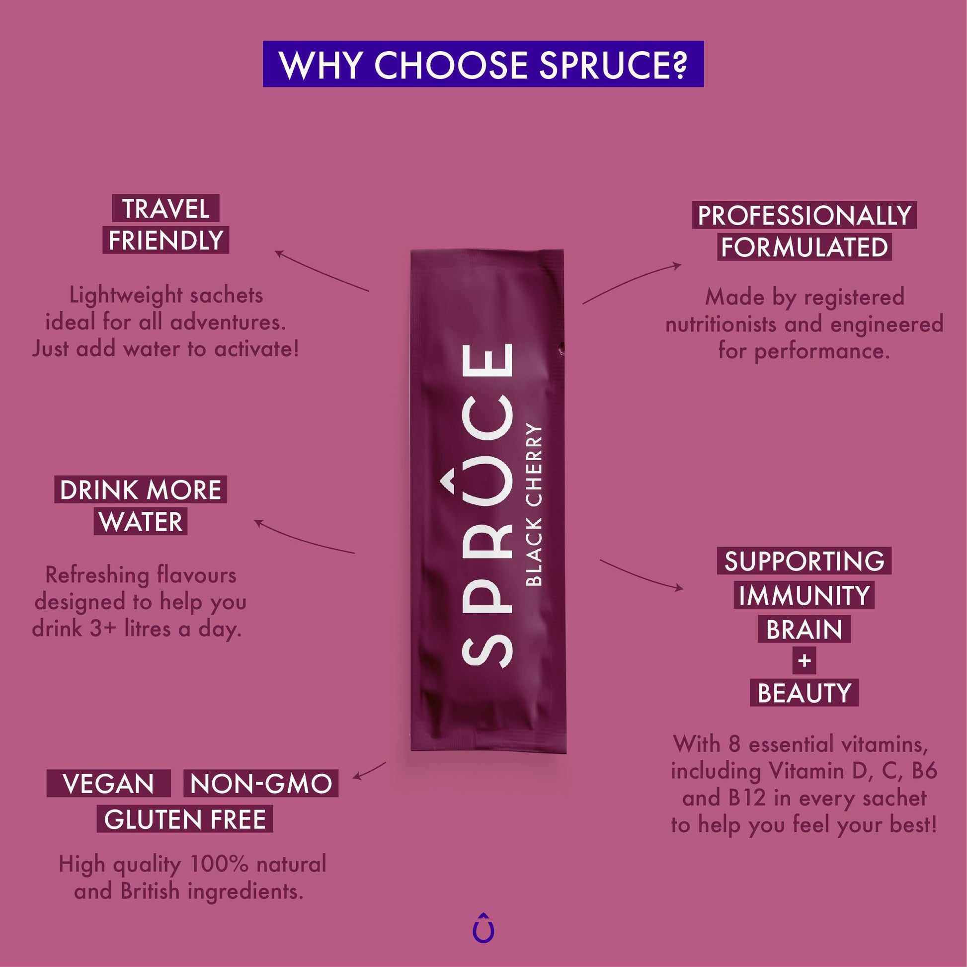 Spruce Natural Water Flavouring With Vitamins – Black Cherry – 48 Drinks – No Sugar – Made With Real Fruits – Healthy Modern Squash Cordial – Perfect For Hydration