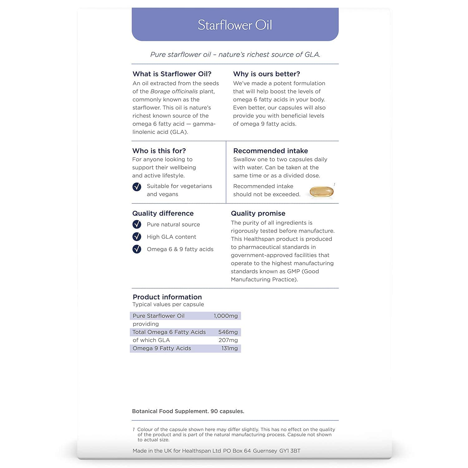 Starflower Oil 1,000mg (90 Capsules) | Healthspan | Richest Source of Gamma-Linolenic Acid (GLA) | Women's Health | 207mg GLA & 131mg Omega 9 Fatty Acids Per Capsule | Vegan