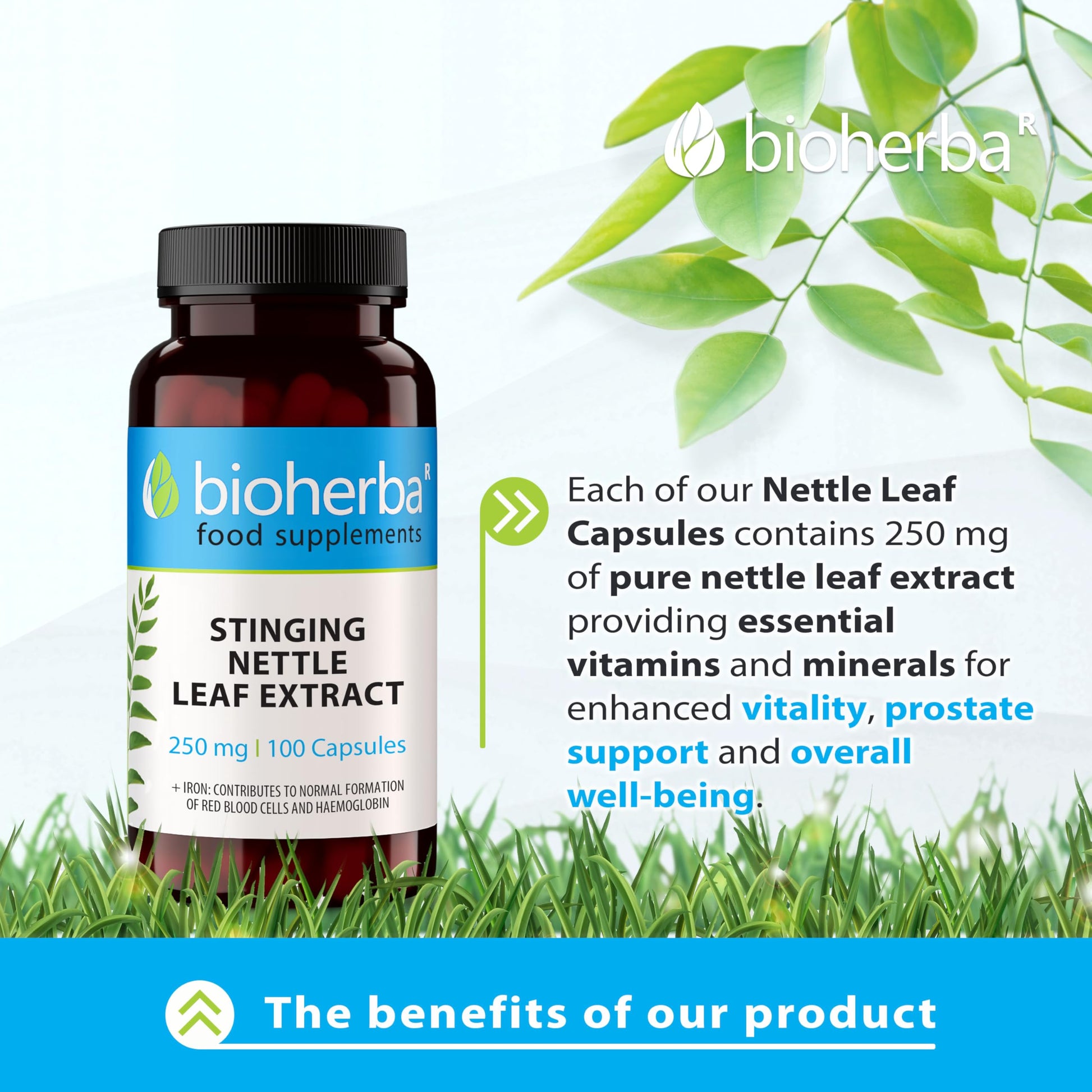 Stinging Nettle Capsules 250 mg - 200 Count Herbal Supplement for Prostate Health Vitality and Water Balance Support by BIOHERBA