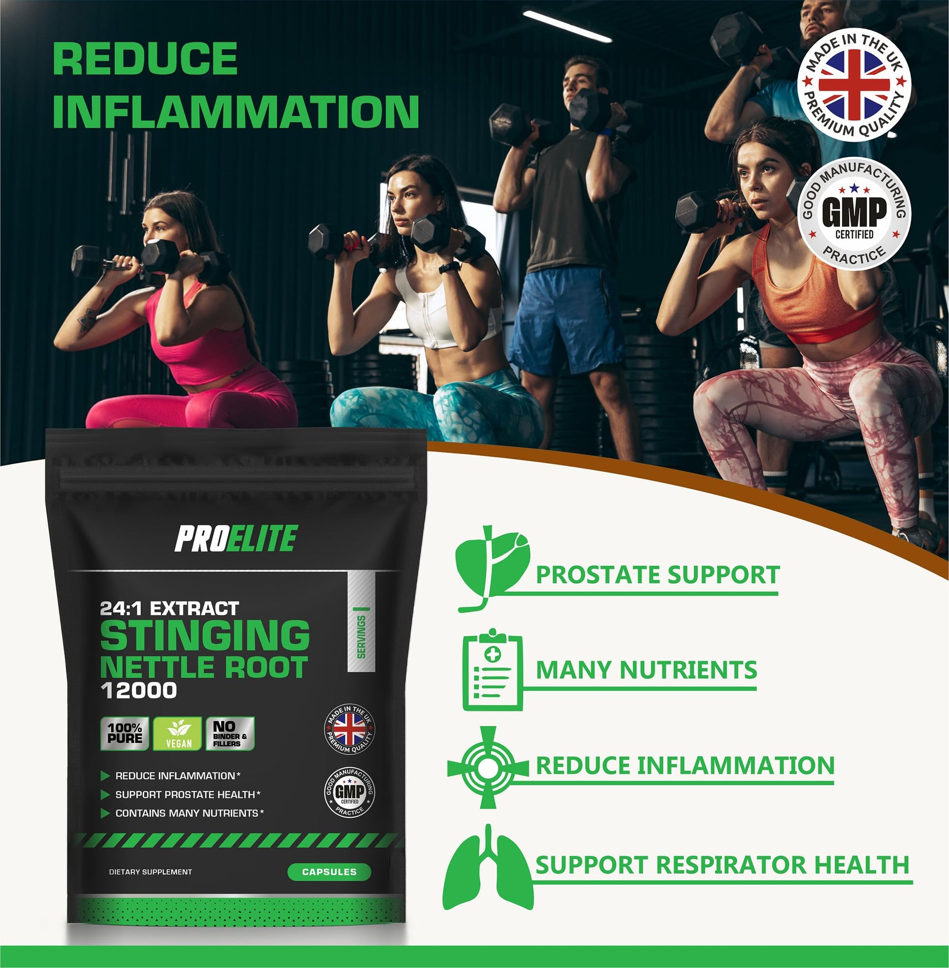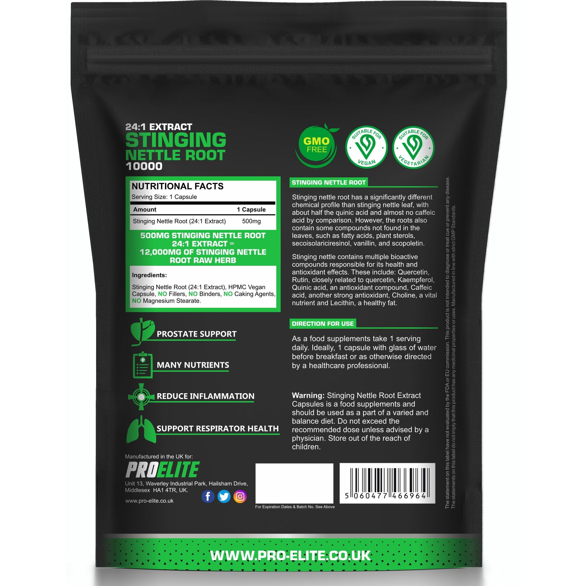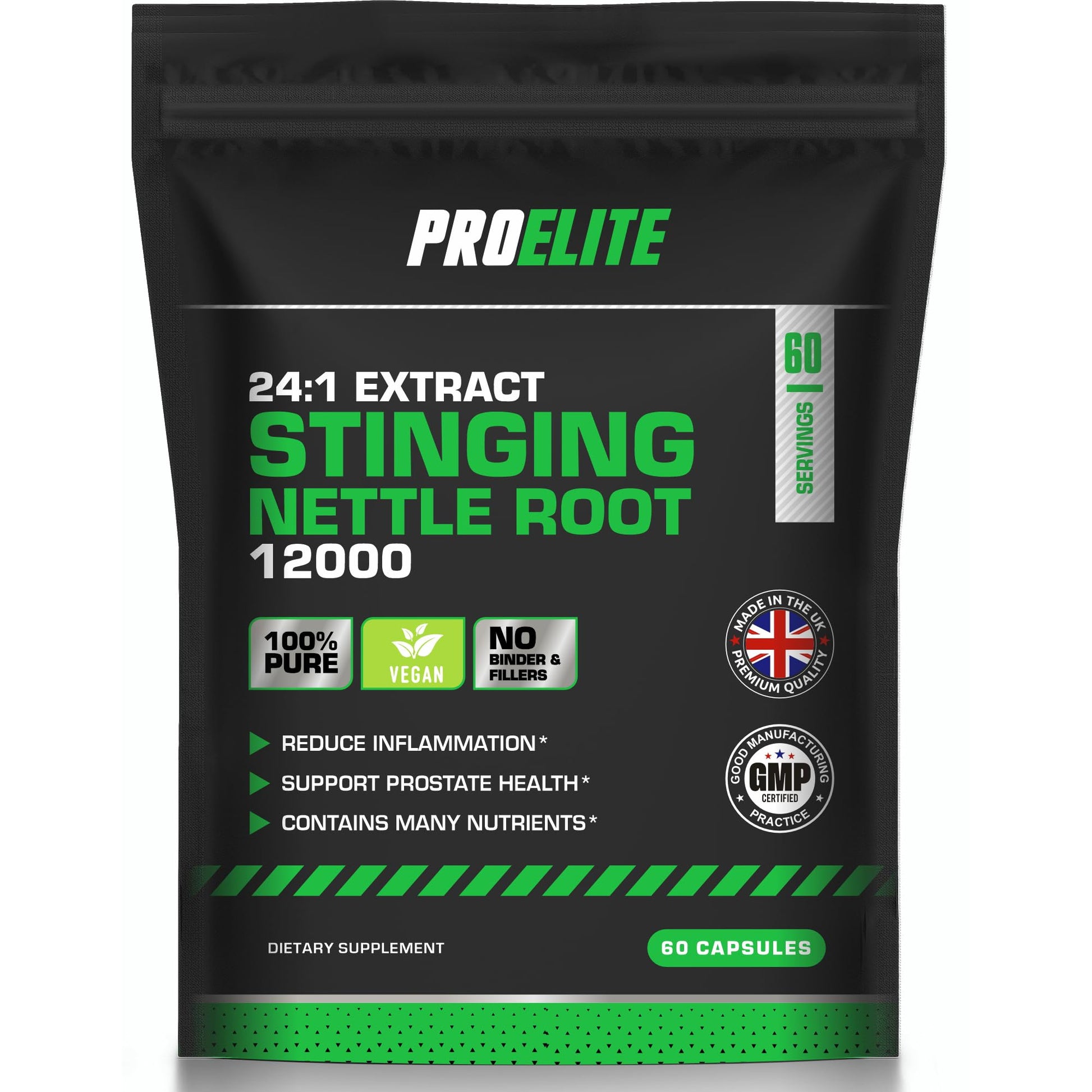 Stinging Nettle Root | 60 Capsules Vegan - 24:1 Extract 12,000mg Nettle Root per Capsule | High Strength Stinging Nettle Alternative to Powder NO Fillers & Binders | Made in UK by PROELITE