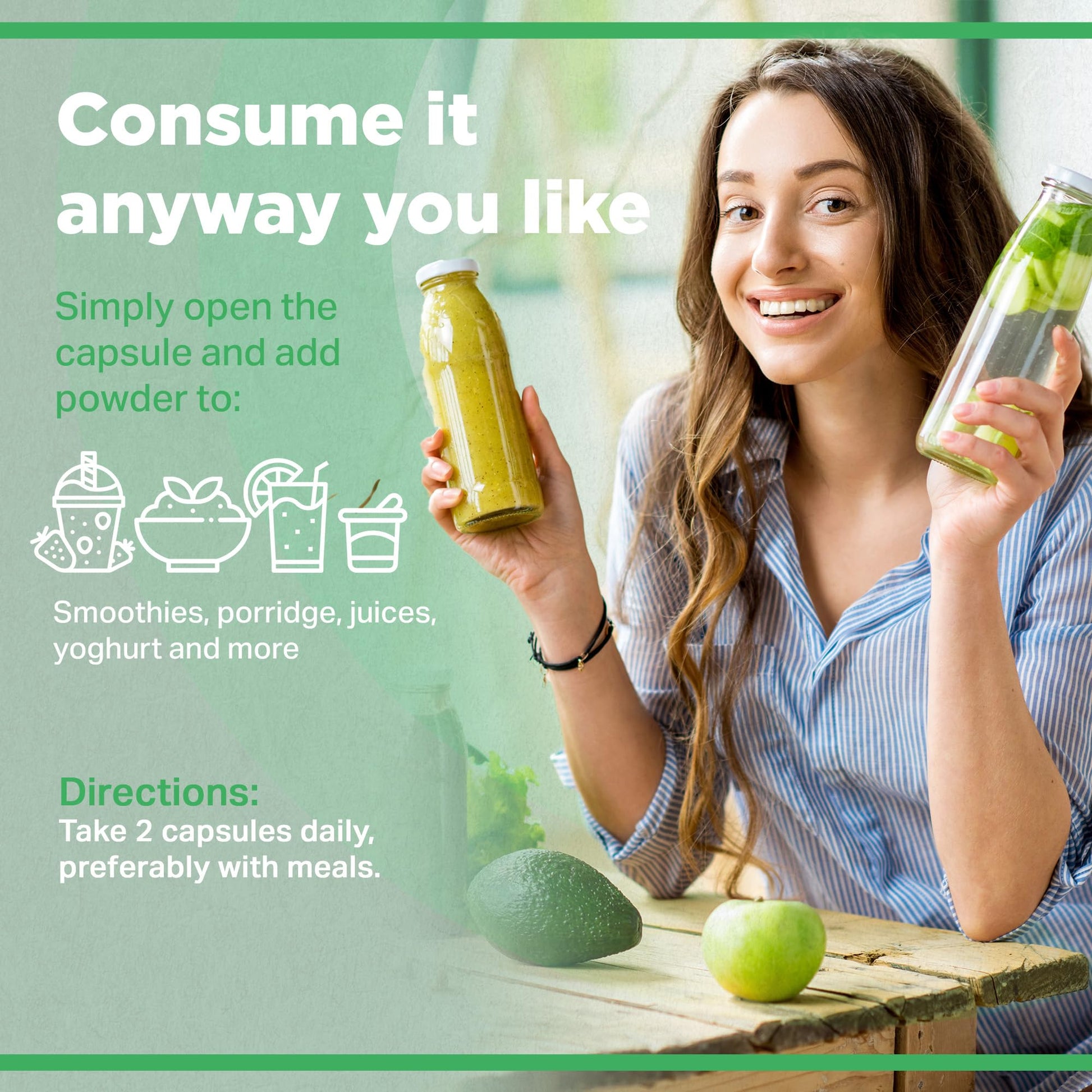 Biotin, Selenium & Zinc - 100% natural formula rich in vitamins and minerals including: Biotin & Vitamin A which contribute to the maintenance of normal hair. Also rich in Zinc and Selenium which contribute to the maintenance of normal skin, hair and nails. Unique Proprietery Blend - 20 natural ingredients including False Daisy, Aloe Vera, Kelp, Saw Palmetto, and Astaxanthin. Our antioxidant supplement contains amino acids and vitamin-rich ingredients that serve as a natural immune system booster. No additives, preservatives, or colouring; just pure clean nutrition. Enhanced Absorption - Experience unmatched results with a natural supplement free from bulking agents, extracts and fillers. Our Hair, Skin & Nails Supplement is more than a product; it's a promise to bring out the best version of you. Embrace the beauty within with our UK made vegan capsules. Easy to Swallow - Our fast-absorbing supplement is easy to take and digest. Don’t like swallowing pills? Simply open the vegan shell and sprinkle the powder into smoothies, juices, yoghurts, and more. Quality You Can Trust - As part of our dedication to honesty and transparency, these herbal supplements are manufactured under strict conditions. Our ISO 22000:2018 registration, a significant step illustrating our values, goals and promises, is further proof of our commitment.More Info