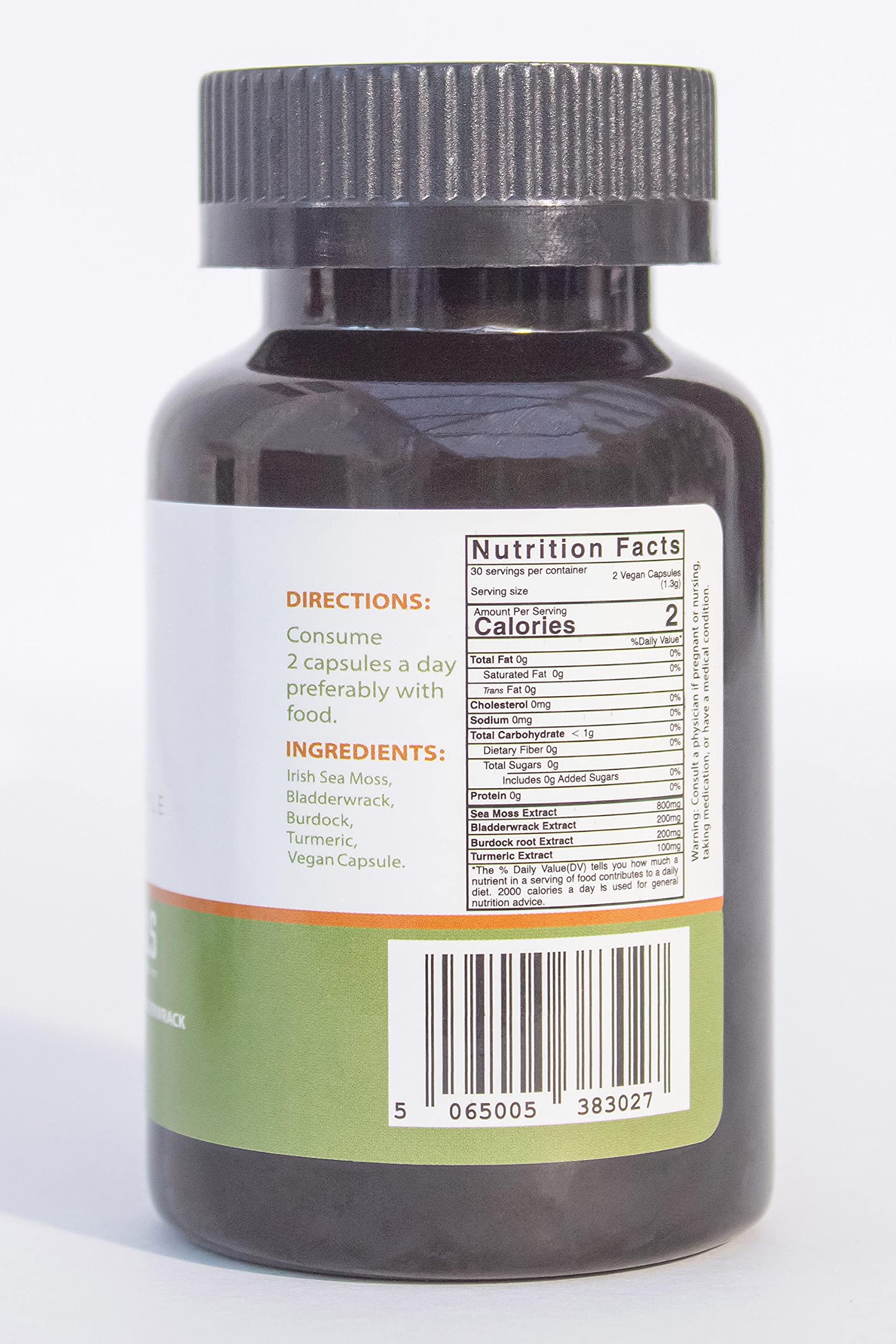 Suave Moss Lifestyle | Natural Sea Moss, Turmeric, Bladderwrack & Burdock Root Capsules | 60 Capsules | Gluten Free, Vegan, Non GMO