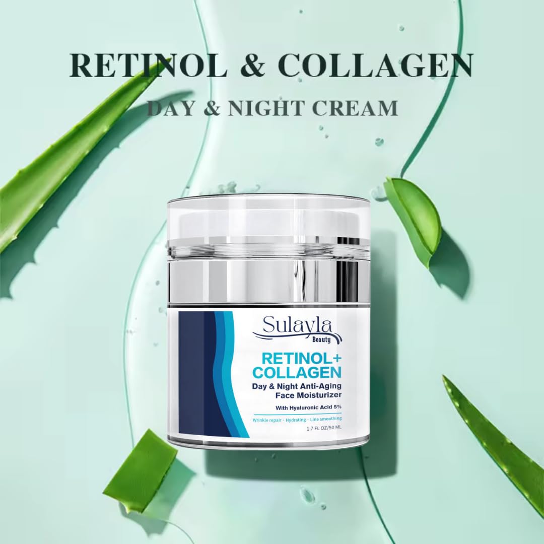 Sulayla Beauty Retinol+ Collagen Day & Night Anti-Aging Face Moisturizing Cream with 5% Hyaluronic Acid & Vitamin E | The Best Anti Aging Cream to Reduce Wrinkles & Age Spots for Women