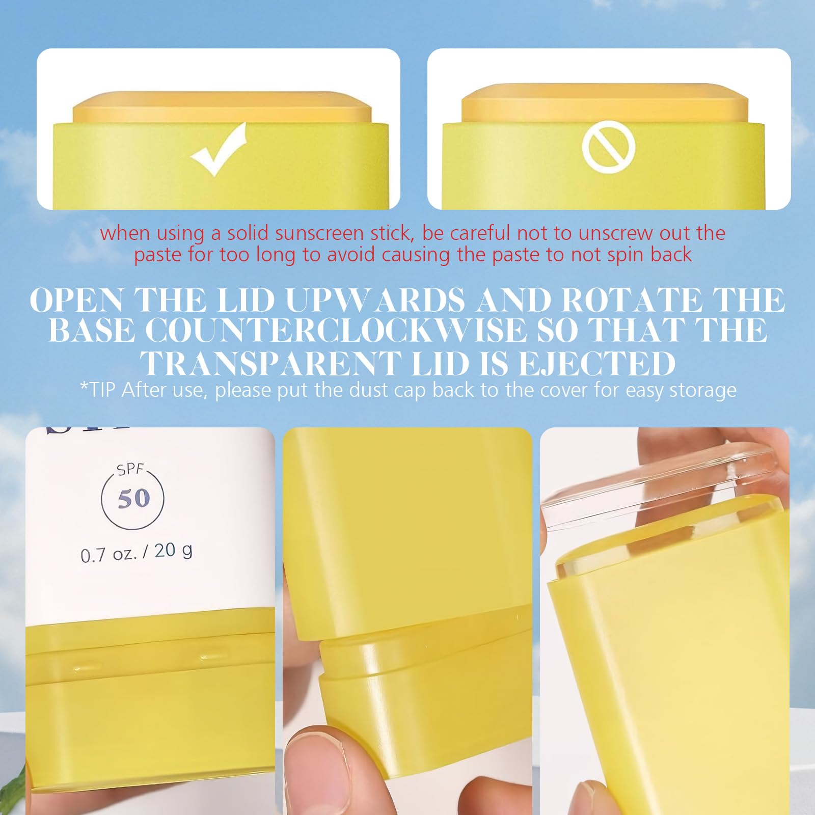 Sunblock Stick 20g Sun Block Sticks for Face Mineral Transparent Sun Stick Spf 50 Face Waterproof, Non-Whitening, Non-Greasy, Suitable for Travel, Vacation, Beach
