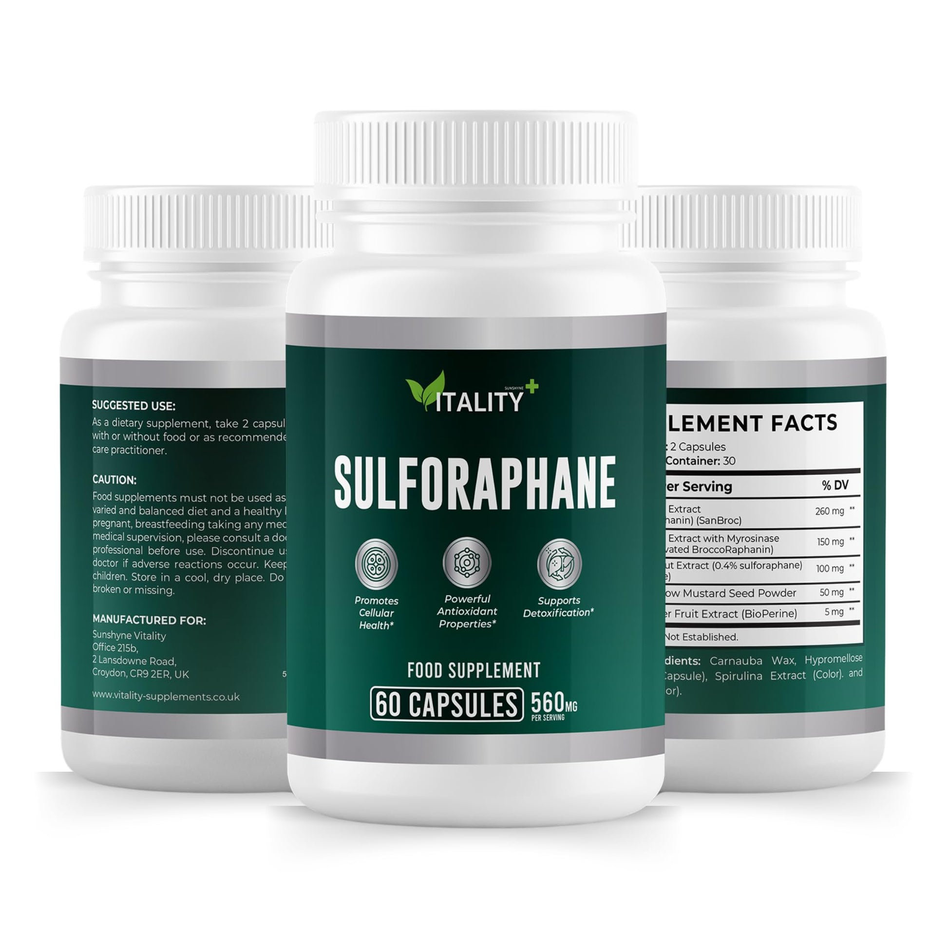 Sunshyne Sulforaphane 560mg Capsules – Comprehensive Detox, Antioxidant & Cellular Health Support – 1 Month Supply