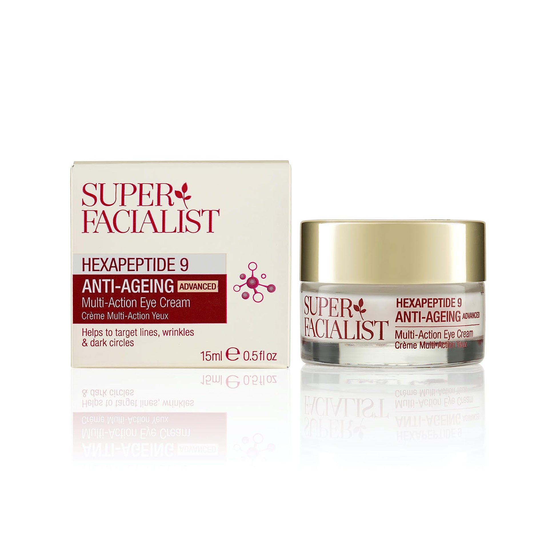 Super Facialist Hexapeptide 9 Anti-Ageing Advanced Multi Action Eye Cream - Anti Ageing Face Cream to Target Dark Circles & Fine Lines with Caffeine, Vegan Friendly, 15 ml