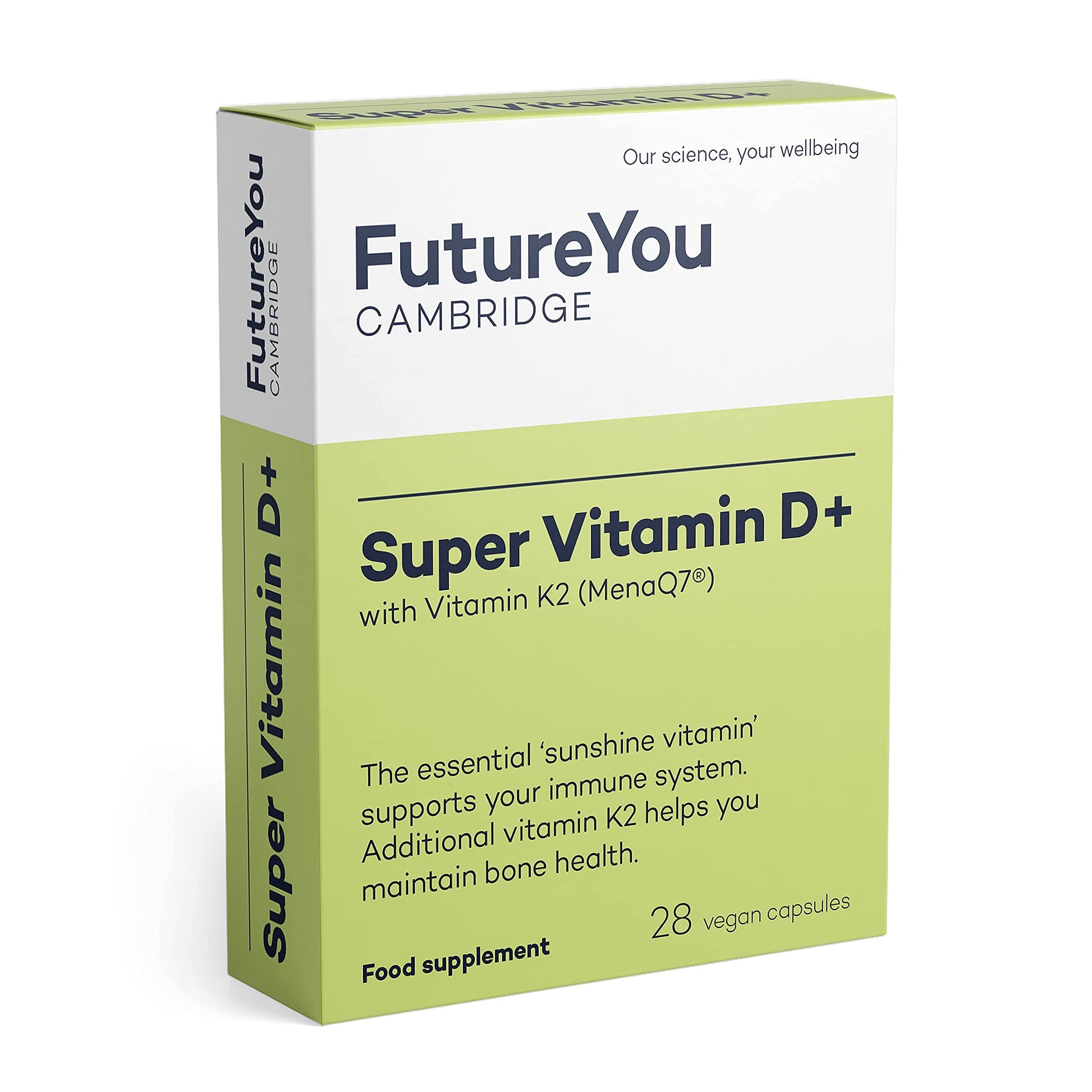Super Vitamin D+ Supplements – High Strength D3 and K2 Vitamin Capsules for Bone Health and Density – Vitamins for Tiredness and Fatigue – Vitamin D Tablets by FutureYou Cambridge
