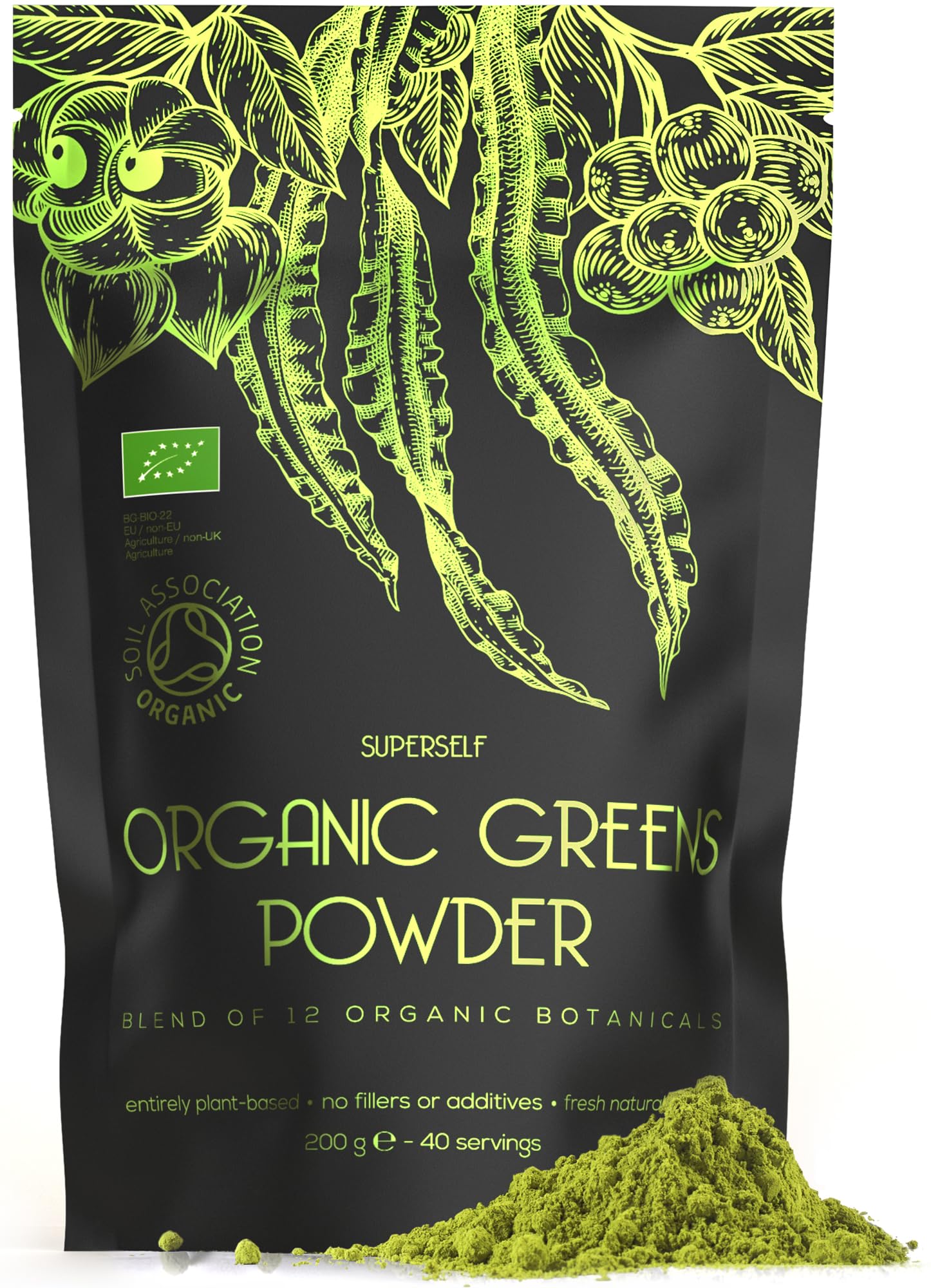 SuperSelf Organic Super Greens Powder - Daily Superfood Green Powder with Matcha, Spirulina, Wheatgrass, Chlorella, Acai - 40 Servings - 12 Supergreens High in Vitamins, Protein, Fibre - No Additives