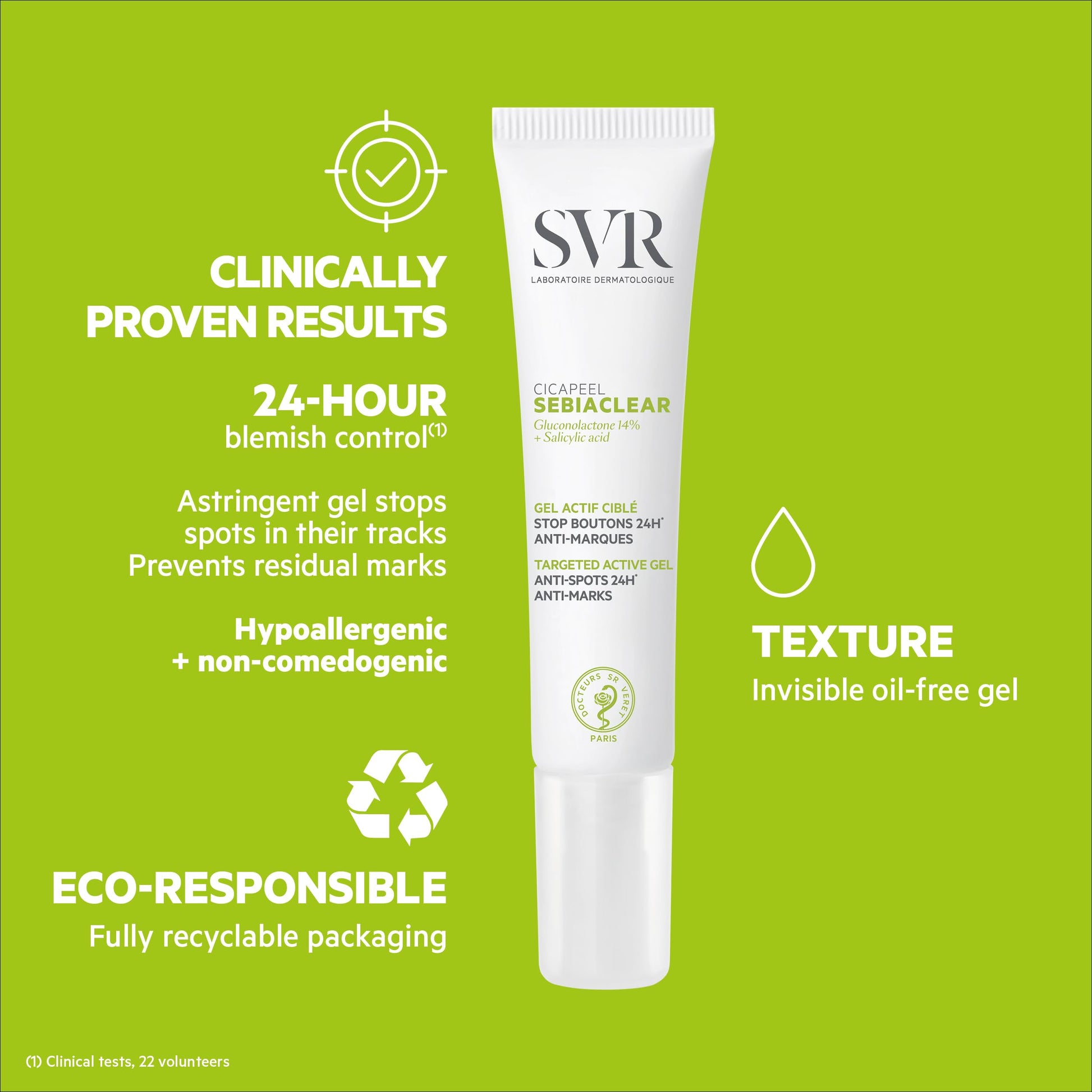 SVR SEBIACLEAR Cicapeel Spot-Targeting Active Gel for Acne-Prone, Oily, Combination Skin, SOS Anti-Marks Invisible Treatment, 15ml